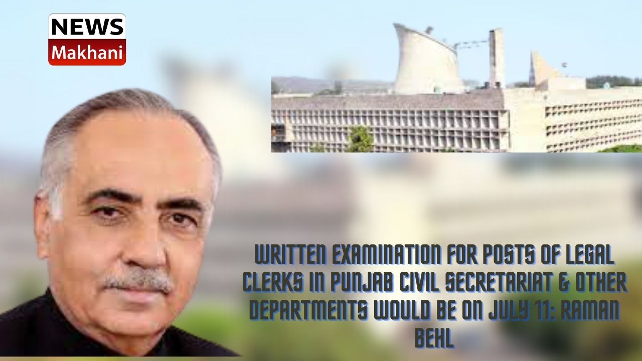पंजाब सिविल सचिवालय और अन्य विभागों में लीगल क्लर्क के पदों के लिए परीक्षा 11 जुलाई को ली जाएगी। यह जानकारी अधीनस्थ सेवाएं चयन बोर्ड पंजाब के चेयरमैन श्री रमन बहल ने आज यहाँ दी।