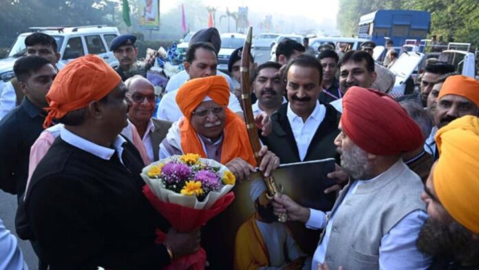 The Union Minister flagged off the marathon and showered flower petals on the participants. Before the flag-off, the song “Hind Ki Chadar, Teg Bahadur” was launched in his presence. The event also featured recital of shabad-kirtan. Youth participants also showcased Gatka (traditional Sikh martial art) performances. A large number of young people had gathered at NDRI Chowk as early as 5 a.m. to take part in the marathon. During the programme, the Union Minister was presented with a kirpan and a portrait of Guru Tegh Bahadur Ji.