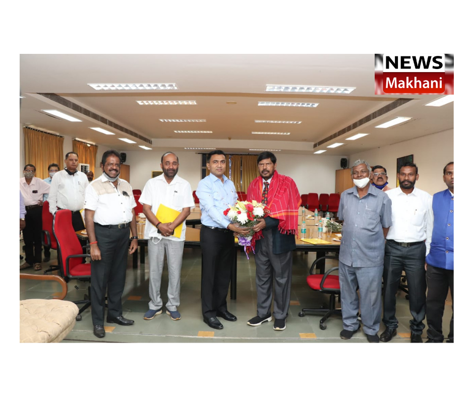 Union Minister of State for Social Justice and Empowerment Shri Ramdas Athwale has made sure of all kinds of support for the State Government for the implementation of Centrally sponsored Social Security Schemes in Goa. Shri Athwale was speaking after the meeting Chief Minister Dr Prmaod Sawant. Chief Minister Goa informed that the State Government is ready to give all facilities to the Nav Buddhas in the state including reservation.