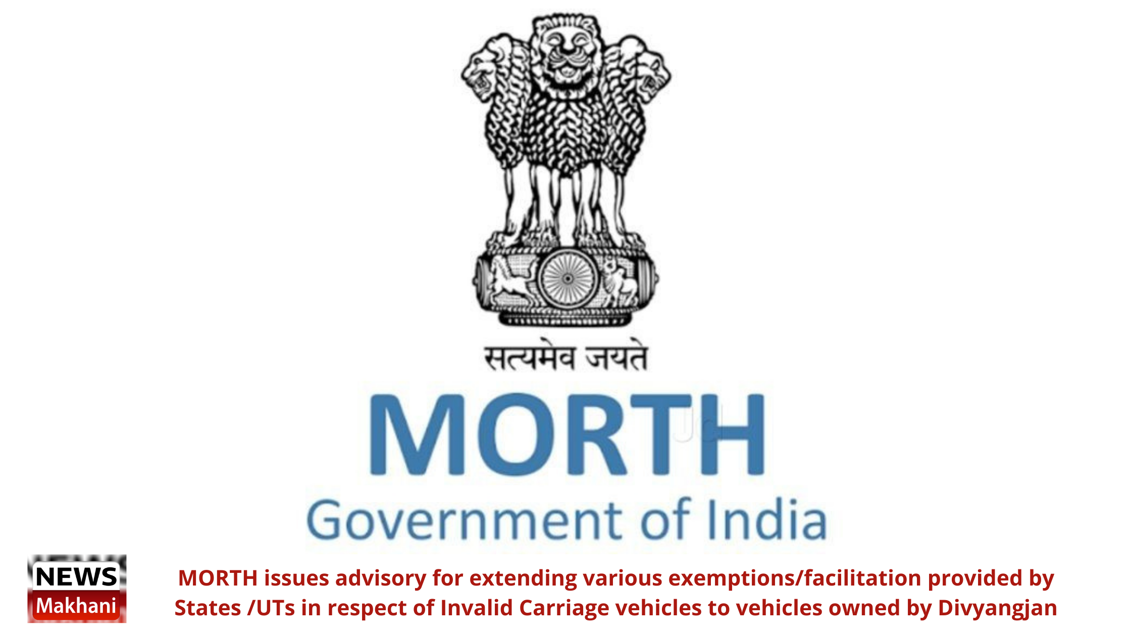 MORTH issues advisory for extending various exemptions/facilitation provided by States /UTs in respect of Invalid Carriage vehicles to vehicles owned by Divyangjan