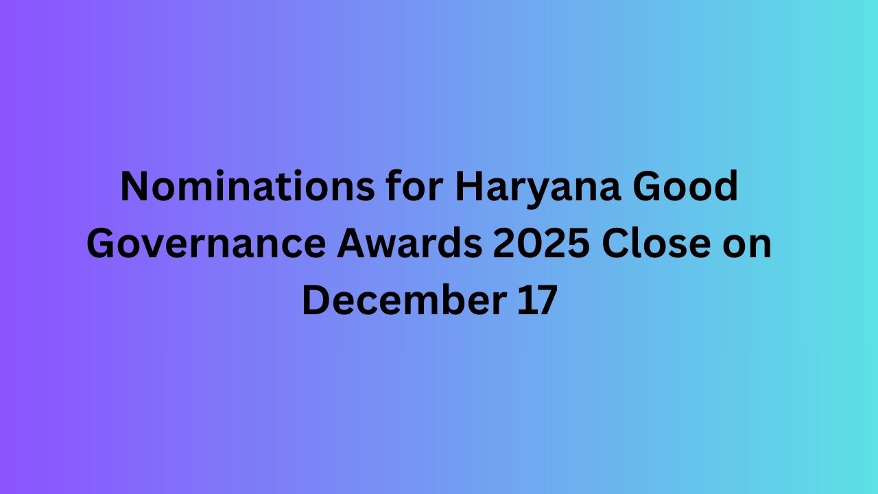 The Haryana Government will confer Good Governance Awards to employees who have done commendable/ innovative work related to Good Governance in the year 2024 and 2025 on the eve of Good Governance Day i.e. 25.12.2025. Now, the last date for submission of applications and nominations for the Haryana Good Governance Award Scheme, 2025 (Haryana Sushaasan Puraskaar Yojana, 2025) has been extended up to 17.12.2025, after which the online portal will be closed. A letter in this regard has been issued by Chief Secretary Sh. Anurag Rastogi.