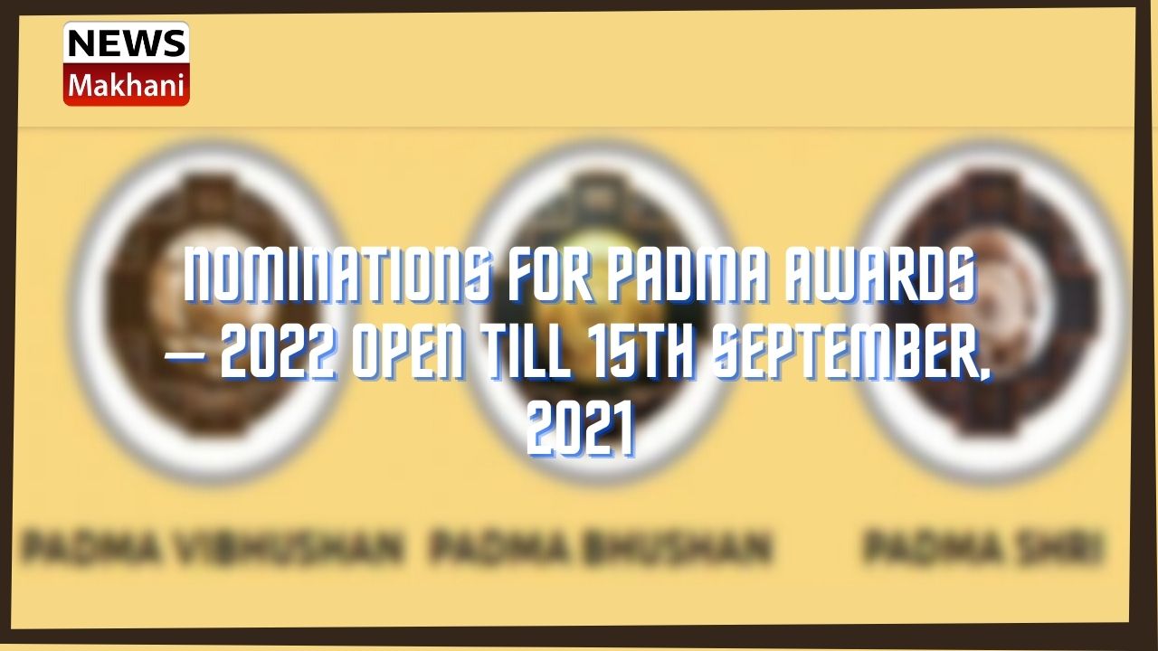 Online nominations/recommendations for the Padma Awards (Padma Vibhushan, Padma Bhushan and Padma Shri) to be announced on the occasion of Republic Day, 2022 are on. The last date for nominations for Padma Awards is 15th September, 2021. The nominations/recommendations for Padma Awards will be received online only on the Padma Award portal https://padmaawards.gov.in
