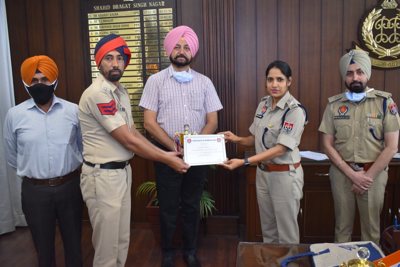 ਵਧੀਆ ਕਾਰਗੁਜ਼ਾਰੀ ਵਿਖਾਉਣ ਵਾਲੇ ਪੁਲਿਸ ਕਰਮੀਆਂ ਨੂੰ ਹਰੇਕ ਮਹੀਨੇ ਸਨਮਾਨਿਤ ਕਰਨ ਦੀ ਲੜੀ ਤਹਿਤ ਅੱਜ ਸੀਨੀਅਰ ਪੁਲਿਸ ਕਪਤਾਨ ਅਲਕਾ ਮੀਨਾ ਵੱਲੋਂ ਜ਼ਿਲੇ ਦੇ ਵਧੀਆ ਕਾਰਗੁਜ਼ਾਰੀ ਕਰਨ ਵਾਲੇ ਪੁਲਿਸ ਕਰਮਚਾਰੀਆਂ ਦਾ ਸਨਮਾਨ ਕੀਤਾ ਗਿਆ। ਇਸ ਦੌਰਾਨ ਅਪ੍ਰੈਲ 2021 ਦੌਰਾਨ ਵਧੀਆ ਕਾਰਗੁਜ਼ਾਰੀ ਲਈ ਮੁੱਖ ਅਫ਼ਸਰ ਥਾਣਾ ਔੜ ਇੰਸਪੈਕਟਰ ਮਲਕੀਤ ਸਿੰਘ ਨੂੰ ਪਹਿਲਾ, ਇੰਚਾਰਜ ਚੌਕੀ ਜਾਡਲਾ ਏ. ਐਸ. ਆਈ ਬਿਕਰਮ ਸਿੰਘ ਨੂੰ ਦੂਜਾ ਅਤੇ ਮੁੱਖ ਅਫ਼ਸਰ ਥਾਣਾ ਸਿਟੀ ਨਵਾਂਸ਼ਹਿਰ ਐਸ. ਆਈ. ਬਖਸ਼ੀਸ਼ ਸਿੰਘ ਨੂੰ ਤੀਜਾ ਸਥਾਨ ਮਿਲਿਆ। ਇਸ ਤਰਾਂ ਜਨਵਰੀ 2021 ਦੌਰਾਨ ਵਧੀਆ ਢੰਗ ਨਾਲ ਆਪਣੀ ਡਿਊਟੀ ਨਿਭਾਉਣ ਵਾਲਿਆਂ ਕਰਮੀਆਂ ਨੂੰ ਵੀ ਉਨਾਂ ਸਨਮਾਨਿਤ ਕੀਤਾ, ਜਿਨਾਂ ਵਿਚ ਮੁੱਖ ਅਫ਼ਸਰ ਥਾਣਾ ਪੋਜੇਵਾਲ ਐਸ. ਆਈ ਪਰਮਿੰਦਰ ਸਿੰਘ ਨੂੰ ਪਹਿਲਾ, ਥਾਣਾ ਸਿਟੀ ਬੰਗਾ ਦੇ ਐਸ. ਆਈ ਮਹਿੰਦਰ ਸਿੰਘ ਨੂੰ ਦੂਜਾ ਅਤੇ ਸੀ. ਸੀ. ਟੀ. ਐਨ. ਐਸ ਏ ਦੇ ਇੰਚਾਰਜ ਐਸ. ਆਈ ਰੇਸ਼ਮ ਸਿੰਘ ਨੂੰ ਤੀਸਰਾ ਸਥਾਨ ਪ੍ਰਾਪਤ ਹੋਇਆ। ਇਸ ਤੋਂ ਇਲਾਵਾ ਫਰਵਰੀ 2021 ਦੌਰਾਨ ਵਧੀਆ ਕਾਰਗੁਜ਼ਾਰੀ ਵਿਖਾਉਣ ਵਾਲੇ ਜਿਨਾਂ ਕਰਮੀਆਂ ਨੂੰ ਸਨਮਾਨਿਤ ਕੀਤਾ ਗਿਆ, ਉਨਾਂ ਵਿਚ ਮੁੱਖ ਅਫ਼ਸਰ ਥਾਣਾ ਬਲਾਚੌਰ ਐਸ. ਆਈ ਅਵਤਾਰ ਸਿੰਘ ਨੂੰ ਪਹਿਲਾ, ਮੁੱਖ ਅਫ਼ਸਰ ਥਾਣਾ ਮੁਕੰਦਪੁਰ ਇੰਸਪੈਕਟਰ ਗੁਰਮੁੱਖ ਸਿੰਘ ਨੂੰ ਦੂਜਾ ਅਤੇ ਸ਼ਿਕਾਇਤ ਸ਼ਾਖਾ ਐਸ. ਐਸ. ਪੀ ਦਫ਼ਤਰ ਦੇ ਮੁੱਖ ਸਿਪਾਹੀ ਹਰਸਪਾਲ ਨੂੰ ਤੀਸਰਾ ਸਥਾਨ ਮਿਲਿਆ।