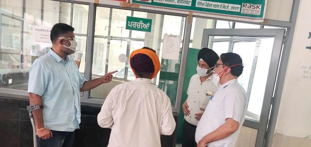 ਫ਼ਰੀਦਕੋਟ 12 ਮਈ , 2021  ਵਧੀਕ ਡਿਪਟੀ ਕਮਿਸ਼ਨਰ (ਵਿਕਾਸ), ਫ਼ਰੀਦਕੋਟ ਸ੍ਰੀ ਪ੍ਰੀਤ ਮਹਿੰਦਰ ਸਿੰਘ ਸਹੋਤਾ ਵੱਲੋਂ ਅੱਜ ਬਾਜਾਖਾਨਾ ਪ੍ਰਾਇਮਰੀ ਹੈਲਥ ਸੈਂਟਰ ਦਾ ਦੌਰਾ ਕੀਤਾ ਗਿਆ। ਇਸ ਮੌਕੇ ਉਨ੍ਹਾਂ ਕੋਵਿਡ-19 ਦੀ ਸੈਪਲਿੰਗ ਅਤੇ ਵੈਕਸੀਨ ਸਬੰਧੀ ਐਸ.ਐਮ.ਓ. ਤੋਂ ਜਾਣਕਾਰੀ ਲਈ ਅਤੇ ਕਿਹਾ ਕਿ ਲੋਕਾਂ ਨੂੰ ਕੋਵਿਡ-19 ਦੀ ਮਹਾਂਮਾਰੀ ਤੋਂ ਬਚਾਉਣ ਲਈ ਵੱਧ ਤੋਂ ਵੱਧ ਸੈਂਪਲਿੰਗ ਅਤੇ ਵੈਕਸੀਨ ਕੀਤੀ ਜਾਵੇ। ਇਸ ਤੋਂ ਬਚਾਅ ਲਈ ਲੋਕਾਂ ਵਿੱਚ ਜਾਗਰੂਕਤਾ ਪੈਦਾ ਕੀਤੀ ਜਾਵੇ ਕਿ ਉਹ ਮਾਸਕ ਦੀ ਵਰਤੋਂ ਕਰਨ, ਘੱਟ ਤੋਂ ਘੱਟ 6 ਫੁੱਟ ਦੀ ਦੂਰੀ ਬਣਾਉਣ ਅਤੇ ਵਾਰ ਵਾਰ ਹੱਥ ਥੋਣ। ਇਸ ਕੰਮ ਲਈ ਪੇਂਡੂ ਵਿਕਾਸ ਤੇ ਪੰਚਾਇਤ ਵਿਭਾਗ ਦੇ ਅਧਿਕਾਰੀਆਂ ਤੇ ਕਰਮਚਾਰੀਆਂ ਦਾ ਸਹਿਯੋਗ ਲੈ ਲਿਆ ਜਾਵੇ।