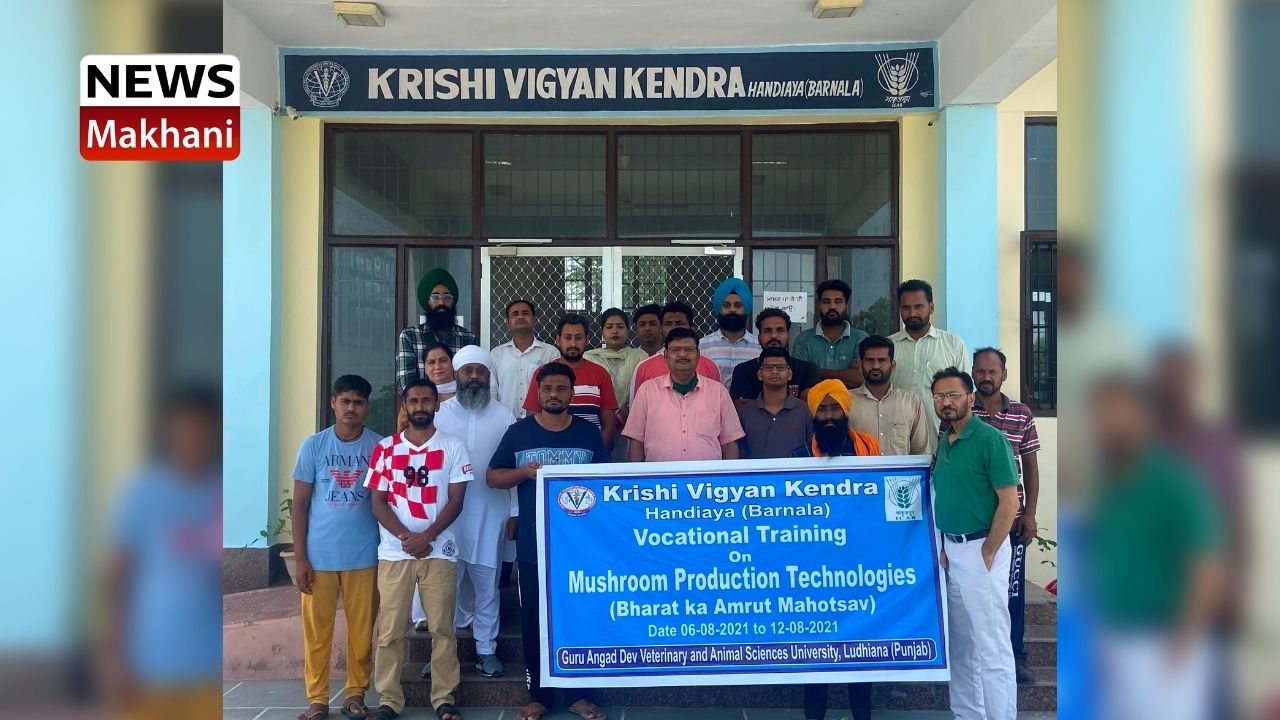ਗੁਰੂ ਅੰਗਦ ਦੇਵ ਵੈਟਰਨਰੀ ਅਤੇ ਐਨੀਮਲ ਸਾਇੰਸਜ਼ ਯੂਨੀਵਰਸਿਟੀ ਲੁਧਿਆਣਾ ਦੇ ਕਿ੍ਰਸ਼ੀ ਵਿਗਿਆਨ ਕੇਂਦਰ ਹੰਡਿਆਇਆ ਬਰਨਾਲਾ ਵੱਲੋਂ ਇੱਕ ਹਫਤੇ ਦਾ ਖੁੰਬ ਉਤਪਾਦਕ ਮੁਹਾਰਤ ਕੋਰਸ ਐਸੋਸੀਏਟ ਡਾਇਰੈਕਟਰ ਕੇ.ਵੀ.ਕੇ ਹੰਡਿਆਇਆ ਡਾ. ਪ੍ਰਹਿਲਾਦ ਸਿੰਘ ਤੰਵਰ ਦੀ ਅਗਵਾਈ ਹੇਠ ਲਗਾਇਆ ਗਿਆ, ਜਿਸ ਵਿੱਚ ਉਨਾਂ ਨੇ ਪੰਜਾਬ ਅਤੇ ਉਤਰੀ ਭਾਰਤ ਵਿੱਚ ਉਗਾਈਆਂ ਜਾਣ ਵਾਲੀਆਂ ਖੁੰਬਾਂ ਦੀਆਂ ਵੱਖ-ਵੱਖ ਕਿਸਮਾਂ ਦੀ ਜਾਣਕਾਰੀ ਦਿੱਤੀ। ਉਨਾਂ ਦੱਸਿਆ ਕਿ ਖੁੰਬਾਂ ਦੀ ਕਾਸ਼ਤ ਨਾਲ ਸਵੈ-ਰੁਜ਼ਗਾਰ ਕਰਕੇ ਹੋਰ ਵੱਧ ਆਮਦਨ ਪ੍ਰਾਪਤ ਕੀਤੀ ਜਾ ਸਕਦੀ ਹੈ।