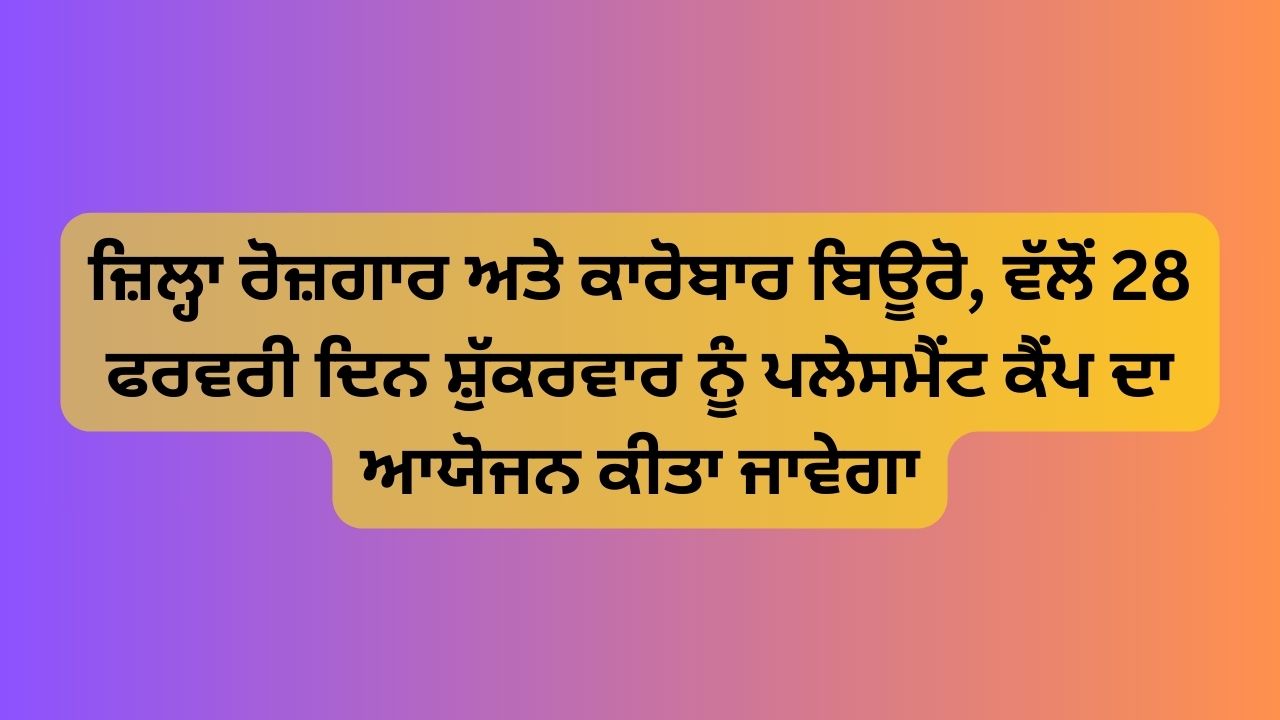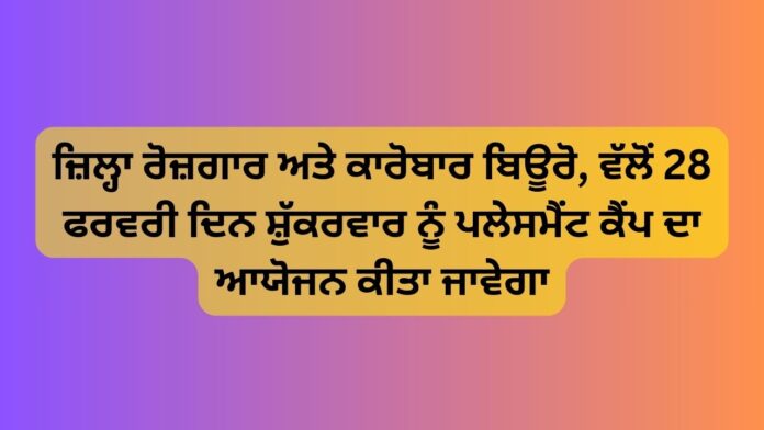ਜ਼ਿਲ੍ਹਾ ਰੋਜ਼ਗਾਰ ਅਤੇ ਕਾਰੋਬਾਰ ਬਿਊਰੋ, ਵੱਲੋਂ 28 ਫਰਵਰੀ ਦਿਨ ਸ਼ੁੱਕਰਵਾਰ ਨੂੰ ਪਲੇਸਮੈਂਟ ਕੈਂਪ ਦਾ ਆਯੋਜਨ ਕੀਤਾ ਜਾਵੇਗਾ