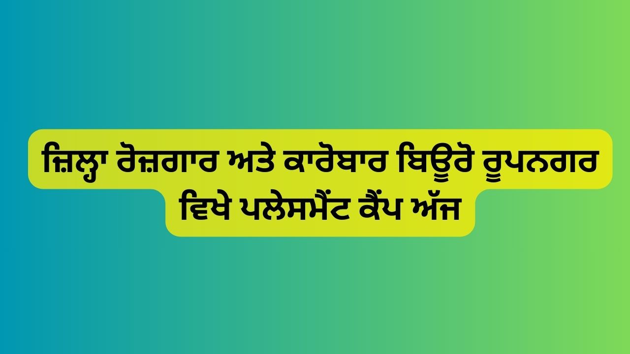 ਜ਼ਿਲ੍ਹਾ ਰੋਜ਼ਗਾਰ ਅਤੇ ਕਾਰੋਬਾਰ ਬਿਊਰੋ ਰੂਪਨਗਰ ਵਿਖੇ ਪਲੇਸਮੈਂਟ ਕੈਂਪ ਅੱਜ