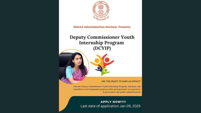 ਡਿਪਟੀ ਕਮਿਸ਼ਨਰ ਅੰਮ੍ਰਿਤਸਰ ਸ੍ਰੀਮਤੀ ਸਾਕਸ਼ੀ ਸਾਹਨੀ ਦੀ ਅਗਵਾਈ ਹੇਠ ਜਿਲ੍ਹਾ ਪ੍ਰਸ਼ਾਸਨ ਨੇ ਇਕ ਹੋਰ ਨਿਵੇਕਲੀ ਪਹਿਲਕਦਮੀ ਕਰਦਿਆਂ ਹੋਇਆਂ ਗ੍ਰੈਜੁਏਟ ਜਾਂ ਹਾਲ ਵਿੱਚ ਹੀ ਗ੍ਰੈਜੁਏਟ ਹੋਏ ਨੌਜਵਾਨਾਂ ਨੂੰ ਪੇਸ਼ੇਵਰ ਬਣਾਉਣ ਲਈ ਇਕ ਯੂਥ ਇੰਟਰਨਸ਼ਿਪ ਪ੍ਰੋਗਰਾਮ ਸ਼ੁਰੂ ਕੀਤਾ ਗਿਆ ਹੈ। ਜਿਸ ਦੀ ਅਰਜੀਆਂ ਮੰਗਣ ਦੀ ਆਖਿਰੀ ਮਿਤੀ 5 ਜਨਵਰੀ 2024 ਨਿਸਚਿਤ ਕੀਤੀ ਗਈ ਹੈ।