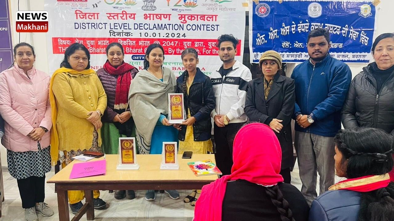 ਯੁਵਾ ਮਾਮਲੇ ਅਤੇ ਖੇਡ ਮੰਤਰਾਲਾ ਭਾਰਤ ਸਰਕਾਰ ਦੇ ਅਦਾਰੇ ਨਹਿਰੂ ਯੁਵਾ ਕੇਂਦਰ ਬਰਨਾਲਾ ਵੱਲੋਂ ਜ਼ਿਲ੍ਹਾ ਯੂਥ ਅਫ਼ਸਰ ਹਰਸ਼ਰਨ ਸਿੰਘ ਦੀ ਪ੍ਰਧਾਨਗੀ ਹੇਠ ਮੇਰਾ ਯੁਵਾ ਭਾਰਤ – ਵਿਕਸਿਤ ਭਾਰਤ @ 2047 ਵਿਸ਼ੇ ‘ਤੇ ਜ਼ਿਲ੍ਹਾ ਪੱਧਰੀ ਭਾਸ਼ਣ ਮੁਕਾਬਲੇ ਦਾ ਆਯੋਜਨ ਸ਼੍ਰੀ ਲਾਲ ਬਹਾਦਰ ਸ਼ਾਸਤਰੀ ਆਰੀਆ ਮਹਿਲਾ ਕਾਲਜ ਬਰਨਾਲਾ ਵਿਖੇ ਕੀਤਾ ਗਿਆ। ਇਸ ਮੌਕੇ ਪ੍ਰਿੰਸੀਪਲ ਡਾ. ਨੀਲਮ ਸ਼ਰਮਾ ਨੇ ਮੁੱਖ ਮਹਿਮਾਨ ਵਜੋਂ  ਸ਼ਿਰਕਤ ਕੀਤੀ।
