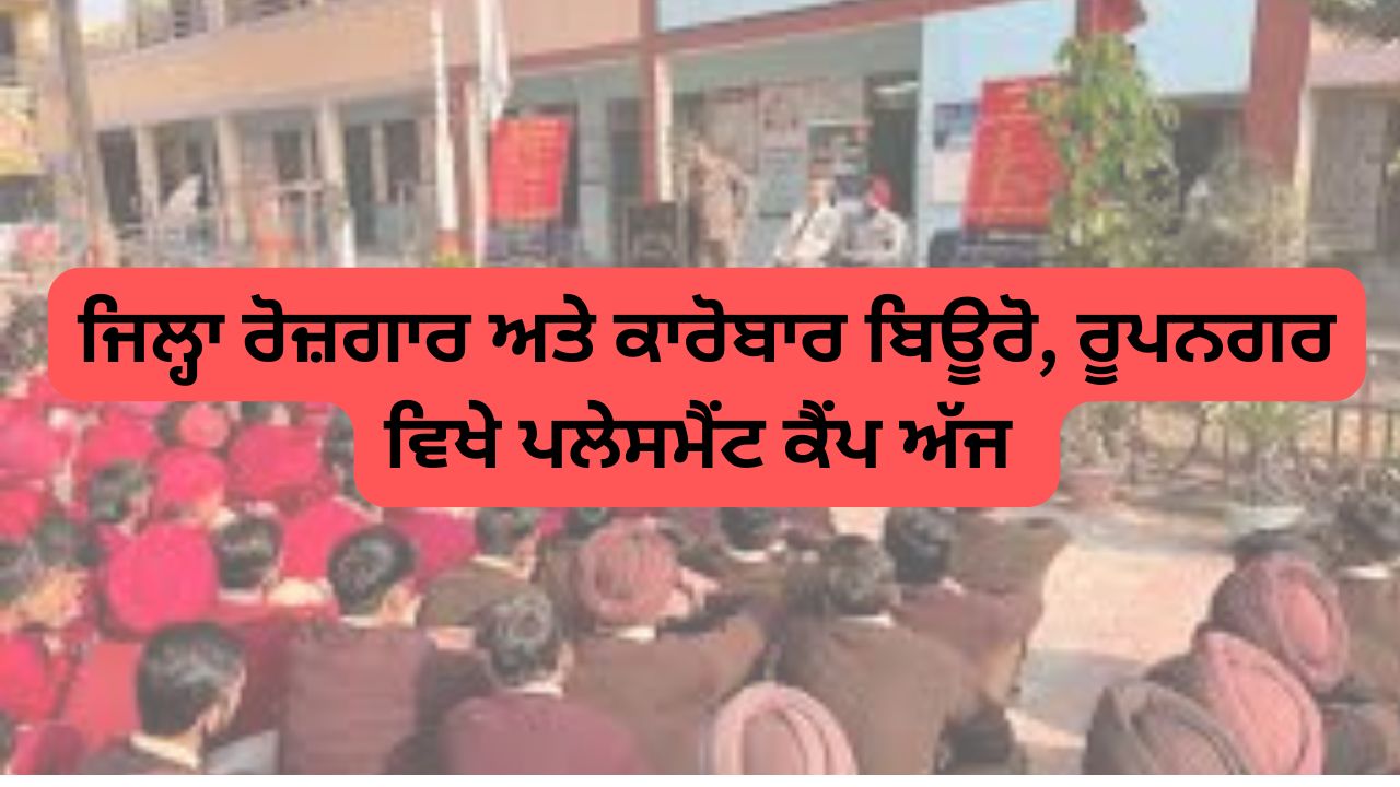 ਜਿਲ੍ਹਾ ਰੋਜ਼ਗਾਰ ਅਤੇ ਕਾਰੋਬਾਰ ਬਿਊਰੋ, ਰੂਪਨਗਰ ਵਲੋਂ ਅੱਜ ਸਵੇਰੇ 10.30 ਵਜੇ ਪਲੇਸਮੈਂਟ ਕੈਂਪ ਲਗਾਇਆ ਜਾ ਰਿਹਾ ਹੈ।