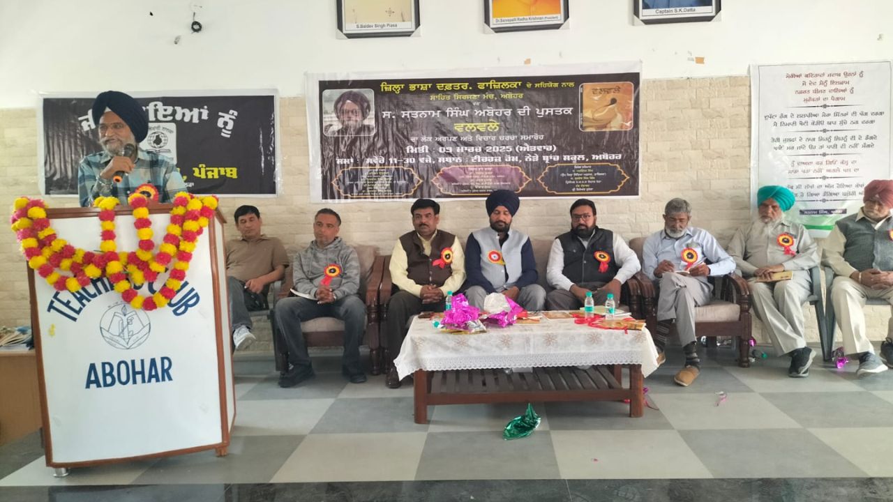 ਤਨਾਮ ਸਿੰਘ ਅਬੋਹਰ ਦੀ ਪੁਸਤਕ “ਵਲਵਲੇ” ਦਾ ਲੋਕ ਅਰਪਣ ਤੇ ਵਿਚਾਰ ਚਰਚਾ ਸਮਾਰੋਹ ਆਯੋਜਿਤ ਕੀਤਾ ਗਿਆ