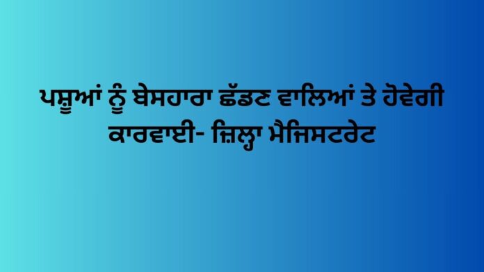 ਉਨ੍ਹਾਂ ਕਿਹਾ ਕਿ ਇਨ੍ਹਾਂ ਹੁਕਮਾਂ ਨੂੰ ਲਾਗੂ ਕਰਨ ਲਈ ਪੁਲਿਸ ਵਿਭਾਗ, ਪਸ਼ੂ ਪਾਲਣ ਵਿਭਾਗ, ਬੀ.ਡੀ.ਪੀ.ਓਜ਼, ਕਾਰਜ ਸਾਧਕ ਅਫਸ਼ਰ ਜ਼ਿੰਮੇਵਾਰ ਹੋਣਗੇ ਅਤੇ ਜੇਕਰ ਉਨ੍ਹਾਂ ਦੇ ਧਿਆਨ ਵਿੱਚ ਕੋਈ ਬੇਸਹਾਰਾ ਪਸ਼ੂ ਛੱਡਣ ਦੀ ਘਟਨਾ ਆਉਂਦੀ ਹੈ ਤਾਂ ਤੁਰੰਤ ਅਜਿਹੇ ਵਿਅਕਤੀਆਂ ਵਿਰੁੱਧ ਕਾਨੂੰਨੀ ਕਾਰਵਾਈ ਅਮਲ ਵਿੱਚ ਲਿਆਂਦੀ ਜਾਵੇ।