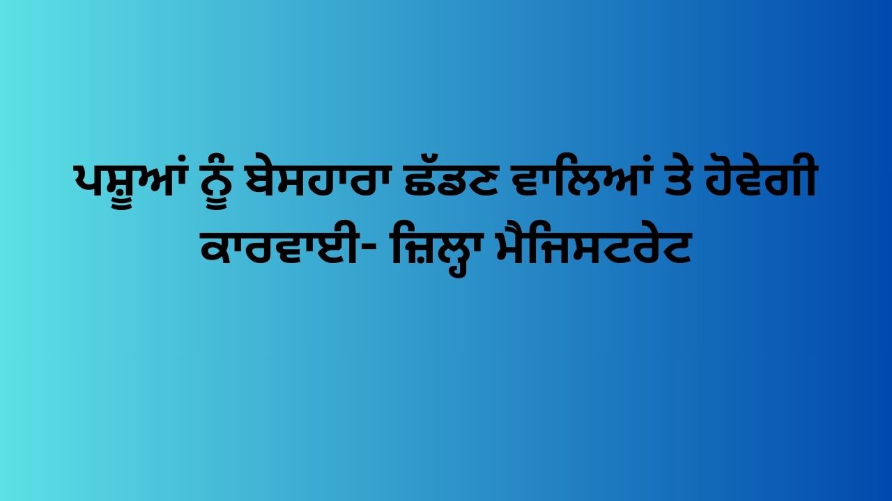 ਜ਼ਿਲ੍ਹਾ ਮੈਜਿਸਟਰੇਟ ਰੂਪਨਗਰ ਸ਼੍ਰੀ ਹਿਮਾਂਸ਼ੂ ਜੈਨ ਨੇ ਪਸ਼ੂਆਂ ਨੂੰ ਬੇਸਹਾਰਾ ਛੱਡਣ ਵਾਲੇ ਲੋਕਾਂ ਨੂੰ ਅਜਿਹਾ ਕਰਨ ਤੋਂ ਰੋਕਣ ਲਈ ਭਾਰਤੀਯ ਨਾਗਰਿਕ ਸੁਰਕਸ਼ਾ ਸੰਹਿਤਾ, 2023 ਦੀ ਧਾਰਾ 163 ਅਧੀਨ ਮਿਲੇ ਅਧਿਕਾਰਾਂ ਦੀ ਵਰਤੋਂ ਕਰਦੇ ਹੋਏ ਗਾਵਾਂ/ਪਸ਼ੂਆਂ ਅਤੇਨਵ ਜੰਮੇ ਵਛੜਿਆ ਨੂੰ ਬੇਸਹਾਰਾ ਛੱਡਣ ’ਤੇ ਰੋਕ ਲਗਾਉਣ ਦੇ ਹੁਕਮ ਜਾਰੀ ਕੀਤੇ ਹਨ।