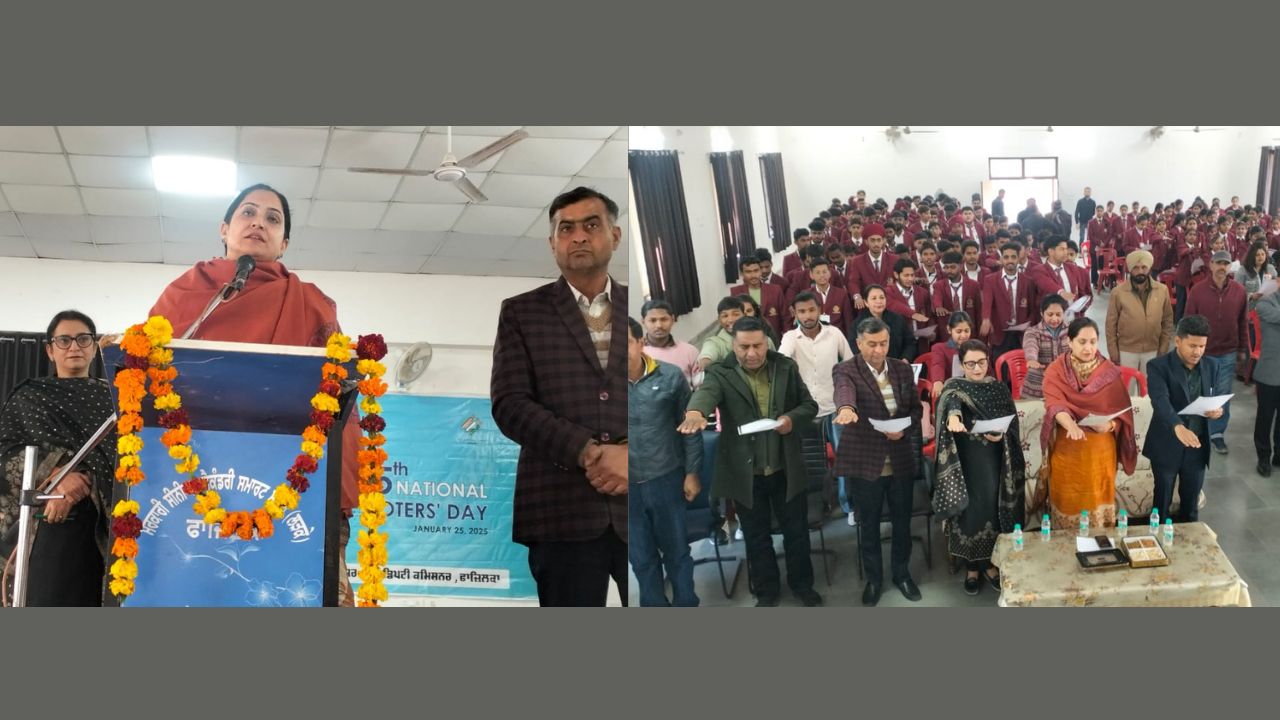 ਇਸ ਮੌਕੇ ਸਮੂਹ ਹਾਜ਼ਰੀਨ ਨੇ ਵੋਟਰ ਪ੍ਰਣ ਵੀ ਕੀਤਾ ਅਤੇ ਭਾਰਤ ਦੇ ਮੁੱਖ ਚੋਣ ਕਮਿਸ਼ਨਰ ਸ੍ਰੀ ਰਾਜੀਵ ਕੁਮਾਰ ਦਾ ਸੁਨੇਹਾ ਵੀ ਇੱਥੇ ਪ੍ਰਸਾਰਿਤ ਕੀਤਾ ਗਿਆ। ਸਮਾਗਮ ਦੀ ਸ਼ੁਰੂਆਤ ਹੋਲੀ ਹਾਰਟ ਪਬਲਿਕ ਸਕੂਲ ਦੇ ਵਿਦਿਆਰਥੀਆਂ ਵੱਲੋਂ ਸਵਾਗਤ ਗੀਤ ਨਾਲ ਕੀਤੀ ਗਈ। ਵੋਟਰ ਦਿਵਸ ਦੇ ਸਬੰਧ ਚ ਜ਼ਿਲ੍ਹਾ ਪੱਧਰ ਤੇ ਹੋਏ ਵੱਖ-ਵੱਖ ਮੁਕਾਬਲਿਆਂ ਵਿੱਚ ਭਾਸ਼ਣ ਮੁਕਾਬਲੇ ਵਿੱਚ ਪਹਿਲਾ ਸਥਾਨ ਹਾਸਿਲ ਕਰਨ ਵਾਲੀ ਸਰਬ ਹਿਤਕਾਰੀ ਵਿੱਦਿਆ ਮੰਦਰ ਦੀ ਵਿਦਿਆਰਥਨ ਈਸ਼ਿਤਾ ਨੇ ਆਪਣੀ ਜੋਸ਼ੀਲੇ ਭਾਸ਼ਣ ਨਾਲ ਸਭ ਨੂੰ ਪ੍ਰਭਾਵਿਤ ਕੀਤਾ। ਪੀਡਬਲਯੂਡੀ ਜ਼ਿਲ੍ਹਾ ਆਈਕਨ ਮਿਸ ਰੇਖਾ ਨੇ ਆਪਣੇ ਨਾਚ ਨਾਲ ਆਪਣੀ ਪ੍ਰਤਿਭਾ ਦੀ ਛਾਪ ਛੱਡੀ।
