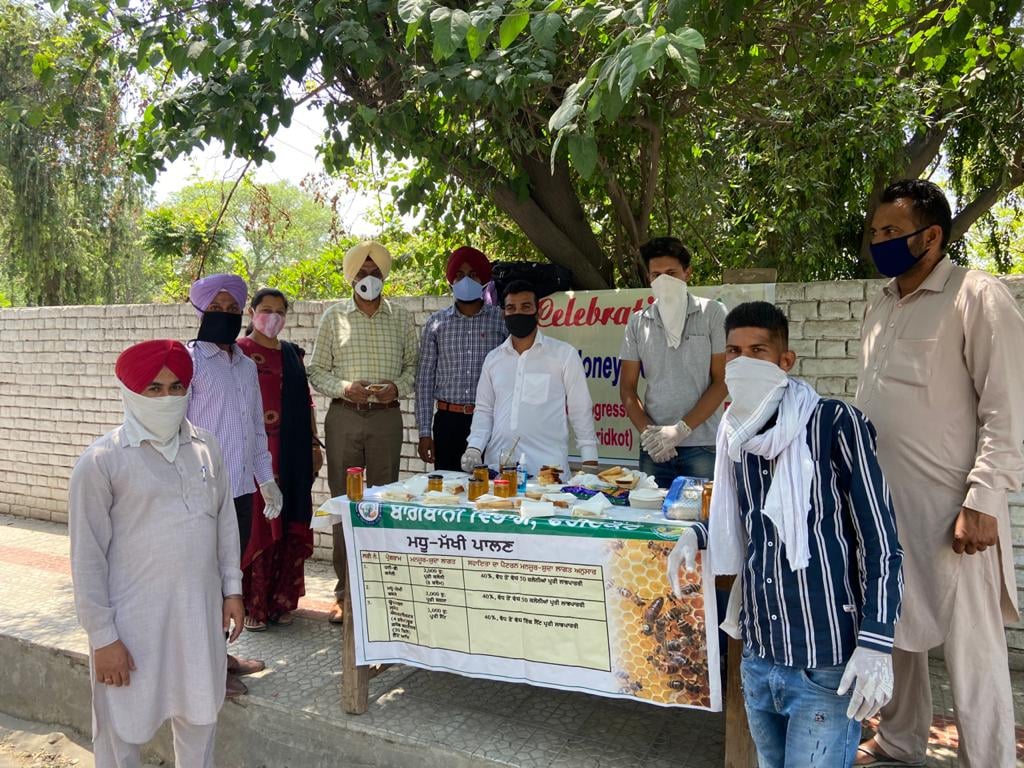 ਜ਼ਿਲ੍ਹਾ ਫ਼ਰੀਦਕੋਟ ਦੇ ਮਧੂ ਮੱਖੀ ਪਾਲਕਾਂ ਦੁਆਰਾ ਬਾਗਬਾਨੀ ਵਿਭਾਗ ਦੇ ਬਾਹਰ ਕਰੋਨਾ ਮਹਾਂਮਾਰੀ ਦੀਆਂ ਸਾਰੀਆਂ ਸਾਵਧਾਨੀਆਂ ਵਰਤਦੇ ਹੋਏ ਲੋਕਾਂ ਨੂੰ ਸ਼ਹਿਦ ਦੀ ਰੋਜਾਨਾ ਜੀਵਨ ਵਿੱਚ ਵਰਤੋਂ ਕਰਨ ਸਬੰਧੀ ਜਾਗਰੂਕ ਕਰਨ ਲਈ ਬ੍ਰੈਡ ਅਤੇ ਸ਼ਹਿਦ ਦਾ ਲੰਗਰ ਲਗਾਇਆ ਗਿਆ। ਇਸ ਦੇ ਨਾਲ ਹੀ ਉਨ੍ਹਾਂ ਨੇ ਸ਼ਹਿਰ ਵਾਸੀਆਂ ਨੂੰ ਸ਼ਹਿਦ ਦੇ ਫ਼ਾਇਦਿਆਂ ਬਾਰੇ ਸਿਹਤ ਪੱਖੋਂ ਮਹੱਤਵਪੂਰਨ ਜਾਣਕਾਰੀਆਂ ਵੀ ਦਿੱਤੀਆਂ।ਇਸ ਸਮੇਂ ਬਾਗਬਾਨੀ ਵਿਭਾਗ ਦੇ ਅਫ਼ਸਰਾਂ ਵੱਲੋਂ ਕੌਮੀ ਬਾਗਬਾਨੀ ਮਿਸ਼ਨ ਤਹਿਤ ਮਧੂ ਮੱਖੀ ਪਾਲਕਾਂ ਨੂੰ ਵਿੱਤੀ ਸਹਾਇਤਾ ਦੀਆਂ ਸਕੀਮਾਂ ਬਾਰੇ ਵਿਸਥਾਰਪੂਰਵਕ ਜਾਣਕਾਰੀ ਦਿੱਤੀ ਅਤੇ ਅੱਜ ਦੇ ਦੌਰ ਵਿੱਚ ਮਧੂ ਮੱਖੀ ਪਾਲਣ ਰੁਜ਼ਗਾਰ ਲਈ ਇਕ ਲਾਹੇਵੰਦ ਧੰਦਾ ਹੈ।