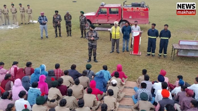 ਇਸ ਮੌਕੇ ਜਸਬੀਰ ਸਿੰਘ ਵਲੋਂ ਅੱਗ ਬੂਝਾਊ ਯੰਤਰਾਂ ਬਾਰੇ ਜਾਣਕਾਰੀ ਦਿੱਤੀ ਗਈ । ਅਗੇ ਦਸਿਆ ਕਿ ਕਿਸੇ ਵੀ ਆਫਤ ਜਾਂ ਮੁਸੀਬਤ ਸਮੇਂ ਰਾਸ਼ਟਰੀ ਸਹਾਇਤਾ ਨੰਬਰ 112 ਨਾਲ ਸੰਪਰਕ ਕੀਤਾ ਜਾ ਸਕਦਾ ਹੈ ਜਿਥੇ ਸਹੀ ਤੇ ਪੁਰੀ ਜਾਣਕਾਰੀ ਦਿੱਤੀ ਜਾਵੇ। ਇਸ ਮੌਕੇ ਫਾਇਰਮੈਨਾਂ ਵਲੋਂ ਕੈਡਿਟਾਂ ਪਾਸੋਂ ਕਿਸੇ ਅੱਗ ਲੱਗਣ ਮੌਕੇ ਅੱਗ ਬੂਝਾਊ ਯੰਤਰ ਨਾਲ ਮੋਕ ਡਰਿਲ ਕਰਵਾਈ ।