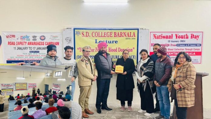 ਇਸ ਮੌਕੇ ਬਲੱਡ ਬੈਂਕ ਸਿਵਲ ਹਸਪਤਾਲ ਬਰਨਾਲਾ ਵੱਲੋਂ ਵਿਦਿਆਰਥੀਆਂ ਨੂੰ ਕੀਟਾਂ ਵੰਡੀਆਂ ਗਈਆਂ। ਕਾਲਜ ਪ੍ਰਿੰਸੀਪਲ ਡਾ. ਰਮਾ ਸ਼ਰਮਾ ਵੱਲੋਂ ਸਾਰੇ ਮਹਿਮਾਨਾਂ ਦਾ ਧੰਨਵਾਦ ਕੀਤਾ ਗਿਆ। ਇਸ ਮੌਕੇ ਨਹਿਰੂ ਯੁਵਾ ਕੇਂਦਰ ਬਰਨਾਲਾ ਦੇ ਵਲੰਟੀਅਰ ਨਵਰਾਜ ਸਿੰਘ, ਜਸਪ੍ਰੀਤ ਸਿੰਘ, ਰਘਵੀਰ ਸਿੰਘ, ਸਾਜਨ ਸਿੰਘ, ਅੰਮ੍ਰਿਤ ਸਿੰਘ, ਜਗਦੀਸ਼ ਸਿੰਘ ਅਤੇ ਬਲਜਿੰਦਰ ਕੌਰ, ਆਦਿ ਹਾਜ਼ਿਰ ਸਨ।
