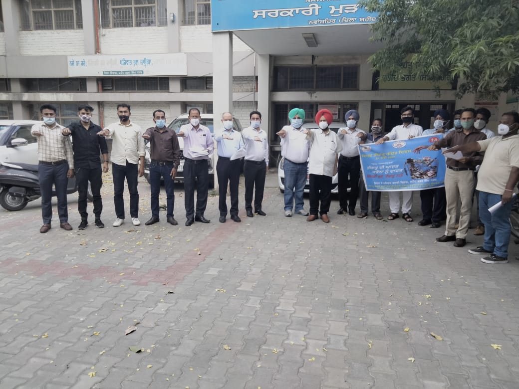 ਨਵਾਂਸ਼ਹਿਰ, 31 ਮਈ 2021 ਸਿਵਲ ਸਰਜਨ ਸ਼ਹੀਦ ਭਗਤ ਸਿੰਘ ਨਗਰ ਡਾ ਗੁਰਦੀਪ ਸਿੰਘ ਕਪੂਰ ਜੀ ਦੇ ਦਿਸ਼ਾ-ਨਿਰਦੇਸ਼ਾਂ ਤਹਿਤ ਜ਼ਿਲ੍ਹਾ ਸਿਹਤ ਅਫਸਰ ਅਤੇ ਜ਼ਿਲ੍ਹਾ ਨੋਡਲ ਅਫ਼ਸਰ ਤੰਬਾਕੂ ਕੰਟਰੋਲ ਸੈੱਲ ਡਾ. ਕੁਲਦੀਪ ਰਾਏ ਦੀ ਯੋਗ ਅਗਵਾਈ ਹੇਠ ਅੱਜ ਸਿਵਲ ਸਰਜਨ ਦਫਤਰ ਵਿਖੇ ਵਿਸ਼ਵ ਤੰਬਾਕੂ ਰਹਿਤ ਦਿਵਸ ਮਨਾਇਆ ਗਿਆ। ਇਸ ਸਾਲ ਵਿਸ਼ਵ ਤੰਬਾਕੂ ਰਹਿਤ ਦਿਵਸ ਦਾ ਥੀਮ ‘ਤੰਬਾਕੂ ਛੱਡਣ ਦਾ ਵਾਅਦਾ ਕਰੋ’ ਹੈ।