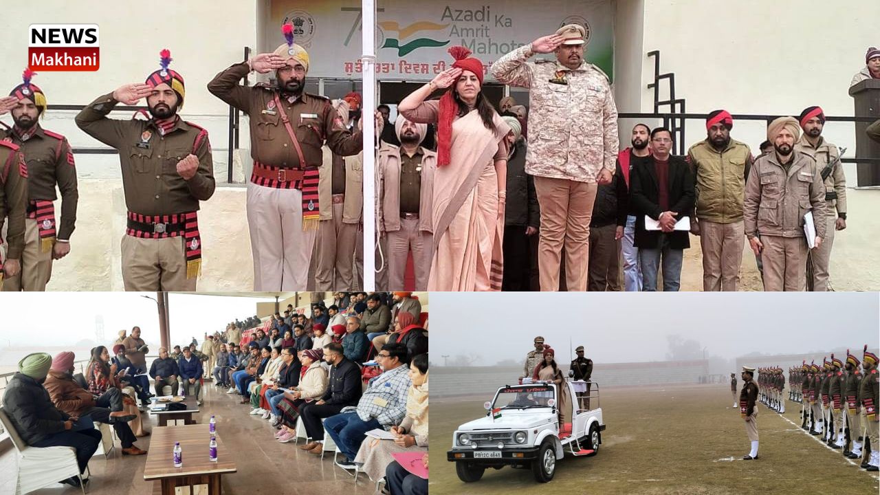 ਗਣਤੰਤਰ ਦਿਵਸ ਦੇ ਮੌਕੇ ‘ਤੇ 26 ਜਨਵਰੀ ਨੂੰ ਹੋਣ ਵਾਲੇ ਜ਼ਿਲ੍ਹਾ ਪੱਧਰੀ ਸਮਾਗਮ ਦੀ ਫੁੱਲ ਡਰੈੱਸ ਰਿਹਰਸਲ ਸ਼ਹੀਦ ਭਗਤ ਸਿੰਘ ਬਹੁਮੰਤਵੀ ਖੇਡ ਸਟੇਡੀਅਮ ਫਾਜ਼ਿਲਕਾ ਵਿਖੇ ਹੋਈ, ਜਿਸ ਦੌਰਾਨ ਡਿਪਟੀ ਕਮਿਸ਼ਨਰ ਡਾ. ਸੇਨੂ ਦੁੱਗਲ ਵਲੋਂ ਕੌਮੀ ਝੰਡਾ ਲਹਿਰਾਉਣ ਦੀ ਰਸਮ ਅਦਾ ਕੀਤੀ ਗਈ। ਇਸ ਮੌਕੇ ਡਿਪਟੀ ਕਮਿਸ਼ਨਰ ਅਤੇ ਐੱਸ. ਪੀ ਗੁਰਮੀਤ ਸਿੰਘ ਵੱਲੋਂ ਪਰੇਡ ਦਾ ਨਿਰੀਖਣ ਕੀਤਾ ਗਿਆ ਅਤੇ ਮਾਰਚ ਪਾਸਟ ਤੋਂ ਸਲਾਮੀ ਲਈ।