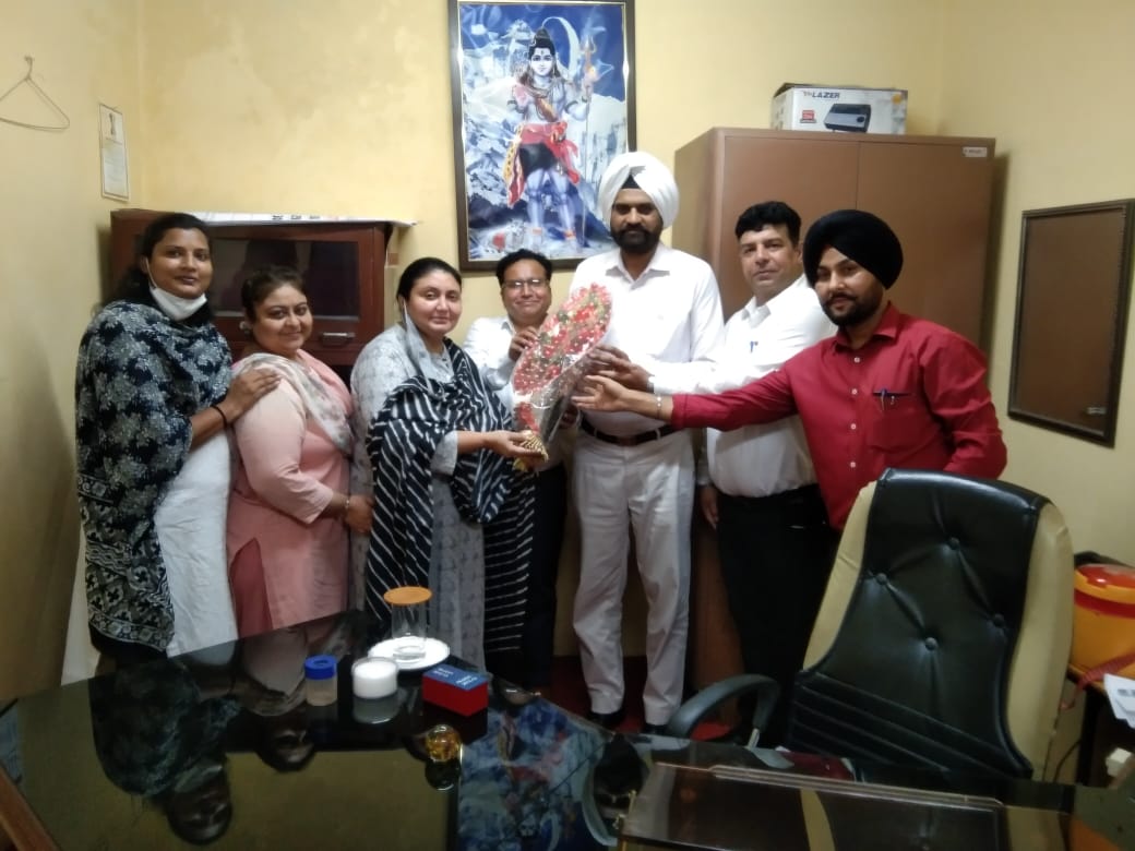 ਜ਼ਿਲਾ ਅਟਾਰਨੀ (ਪ੍ਰੋਸੀਕਿਊਸ਼ਨ) ਸਤਨਾਮ ਸਿੰਘ ਦਾ ਸਵਾਗਤ ਕਰਦੇ ਹੋਏ ਡਿਪਟੀ ਡੀ. ਏ ਵਰਿੰਦਰ ਕੁਮਾਰ, ਤਰਨਵੀਰ ਕੌਰ ਤੇ ਹੋਰ।