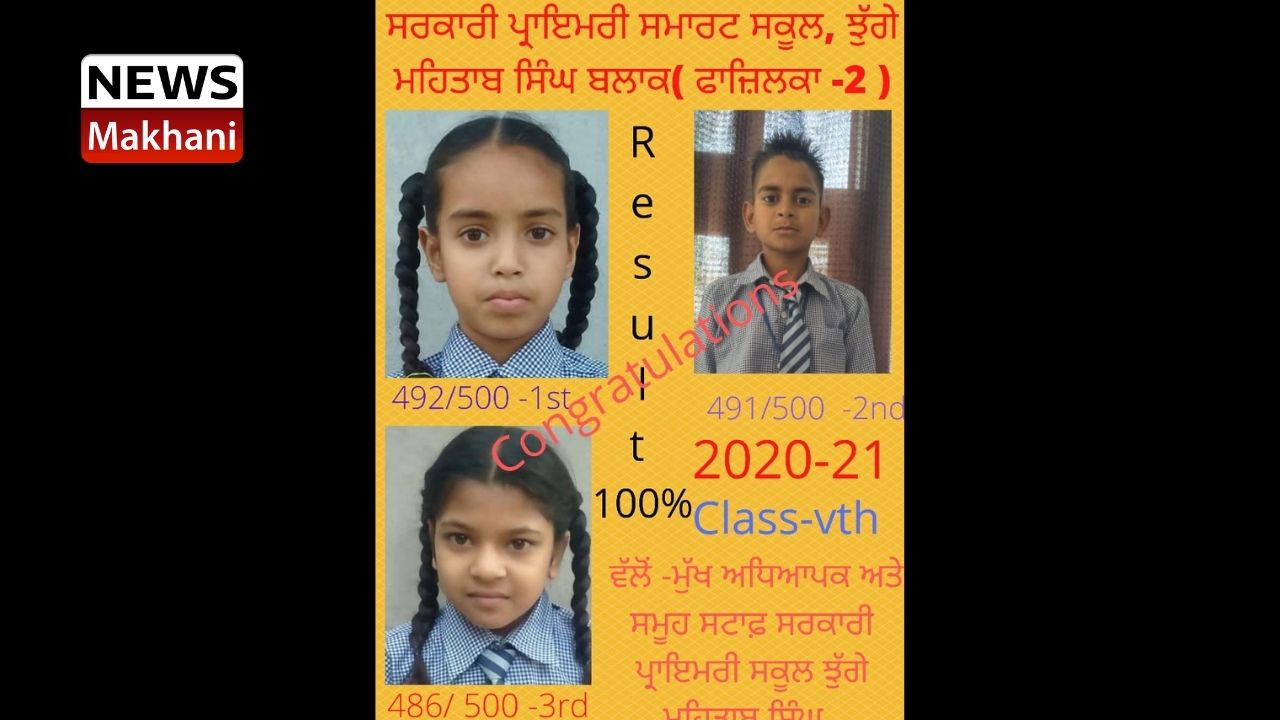 ਮਾਰਚ 2021 ਵਿੱਚ ਹੋਈ ਪੰਜਵੀ ਕਲਾਸ ਦੀ ਬੋਰਡ ਦੀ ਪ੍ਰੀਖਿਆ ਵਿੱਚ ਸਰਕਾਰੀ ਪ੍ਰਾਇਮਰੀ ਸਕੂਲ ਝੁੱਗੇ ਮਹਿਤਾਬ ਸਿੰਘ (ਪੱਕਾ ਚਿਸ਼ਤੀ) ਦਾ ਨਤੀਜਾ ਸ਼ਾਨਦਾਰ ਰਿਹਾ। ਸਾਰੇ ਬੱਚਿਆਂ ਦੇ ਚੰਗੇ ਅੰਕ ਨਾਲ ਪਾਸ ਹੋਣ ਤੇ ਸਕੂਲ ਦਾ ਨਤੀਜਾ 100 ਫੀਸਦੀ ਰਿਹਾ। ਸੇਜਾ ਰਣੀ ਨੇ 492/500 ਅੰਕ ਪ੍ਰਾਪਤ ਕਰਕੇ ਪਹਿਲਾ, ਆਰਿਯਨ ਕੁਮਾਰ ਨੇ 491/500 ਅੰਕ ਪ੍ਰਾਪਤ ਕਰਕੇ ਦੂਜਾ ਅਤੇ ਰਾਧਾ ਰਾਣੀ 486/500 ਅੰਕ ਪ੍ਰਾਪਤ ਕਰਕੇ ਤੀਸਰਾ ਸਥਾਨ ਪ੍ਰਾਪਤ ਕੀਤਾ ਹੈ।
