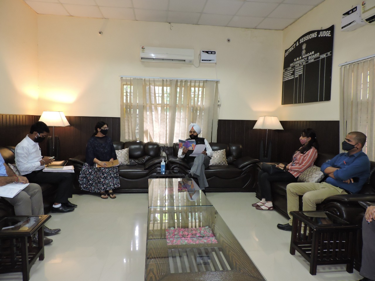 ਕੈਪਸ਼ਨ :-ਕੌਮੀ ਲੋਕ ਅਦਾਲਤ ਸਬੰਧੀ ਬੈਂਕ ਅਧਿਕਾਰੀਆਂ ਨਾਲ ਮੀਟਿੰਗ ਕਰਦੇ ਹੋਏ ਜ਼ਿਲਾ ਤੇ ਸੈਸ਼ਨ ਜੱਜ ਕੰਵਲਜੀਤ ਸਿੰਘ ਬਾਜਵਾ। ਨਾਲ ਹਨ ਸੀ. ਜੇ. ਐਮ ਹਰਪ੍ਰੀਤ ਕੌਰ ਤੇ ਹੋਰ।