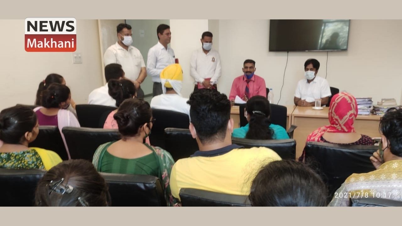 ਜ਼ਿਲਾ ਰੋਜ਼ਗਾਰ ਤੇ ਕਾਰੋਬਾਰ ਬਿਊਰੋ ਵਿਖੇ ਪਲੇਸਮੈਂਟ ਕੈਂਪ ਦੌਰਾਨ ਪ੍ਰਾਰਥੀਆਂ ਨੂੰ ਸੰਬੋਧਨ ਕਰਦੇ ਹੋਏ ਵਧੀਕ ਡਿਪਟੀ ਕਮਿਸ਼ਨਰ (ਜ) ਜਸਵੀਰ ਸਿੰਘ। ਨਾਲ ਹਨ ਜ਼ਿਲਾ ਰੋਜ਼ਗਾਰ ਅਫ਼ਸਰ ਸੰਜੀਵ ਕੁਮਾਰ ਤੇ ਹੋਰ।