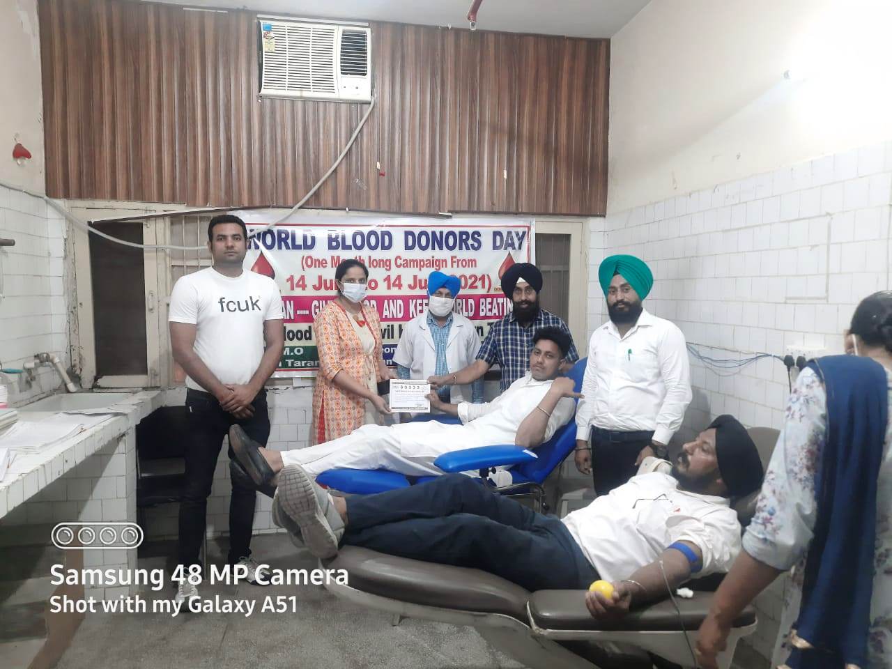 ਤਰਨ ਤਾਰਨ, 29 ਜੁਲਾਈ 2021 ਡਿਪਟੀ ਕਮਿਸ਼ਨਰ ਤਰਨ ਤਾਰਨ ਸ੍ਰ. ਕੁਲਵੰਤ ਸਿੰਘ ਦੇ ਦਿਸ਼ਾ ਨਿਰਦੇਸ਼ਾਂ ਤਹਿਤ ਜ਼ਿਲ੍ਹਾ ਰੈਡ ਕਰਾਸ ਸੋਸਾਇਟੀ ਤਰਨਤਾਰਨ ਵੱਲੋਂ ਸਿਵਲ ਹਸਪਤਾਲ ਤਰਨ ਤਾਰਨ ਵਿਖੇ ਖੂਨਦਾਨ ਕੈਂਪ ਲਗਾਇਆ ਗਿਆ। ਜਿਸ ਦਾ ਉਦਘਾਟਨ ਕਾਰਜਕਾਰੀ ਸੈਕਟਰੀ ਰੈਡ ਕਰਾਸ ਸੋਸਾਇਟੀ ਸ੍ਰ. ਤੇਜਿੰਦਰ ਸਿੰਘ ਰਾਜਾ ਵੱਲੋਂ ਕੀਤਾ ਗਿਆ। ਖੂਨਦਾਨ ਕੈਂਪ ਵਿੱਚ ਖੂਨਦਾਨ ਕਰਨ ਆਏ ਦਾਨੀਆਂ ਨੂੰ  ਸੈਕਟਰੀ ਰੈਡ ਕਰਾਸ ਸੋਸਾਇਟੀ  ਸ੍ਰ. ਤੇਜਿੰਦਰ ਸਿੰਘ ਰਾਜਾ ਅਤੇ ਡਾ. ਰੇਖਾ ਰਾਣਾ ਵੱਲੋਂ ਸਰਟੀਫੀਕੇਟ ਦੇ ਕੇ ਸਨਮਾਨਿਤ ਤੇ ਧੰਨਵਾਦ ਕੀਤਾ ਗਿਆ। ਇਸ ਮੌਕੇ ਸ੍ਰ. ਸੁਰਜੀਤ ਸਿੰਘ ਨਿੱਝਰ ਸੁਪਰਵਾਈਜਰ ਅਤੇ ਬਲੱਡ ਬੈਂਕ ਦਾ ਸਟਾਫ ਹਾਜ਼ਰ ਸਨ।