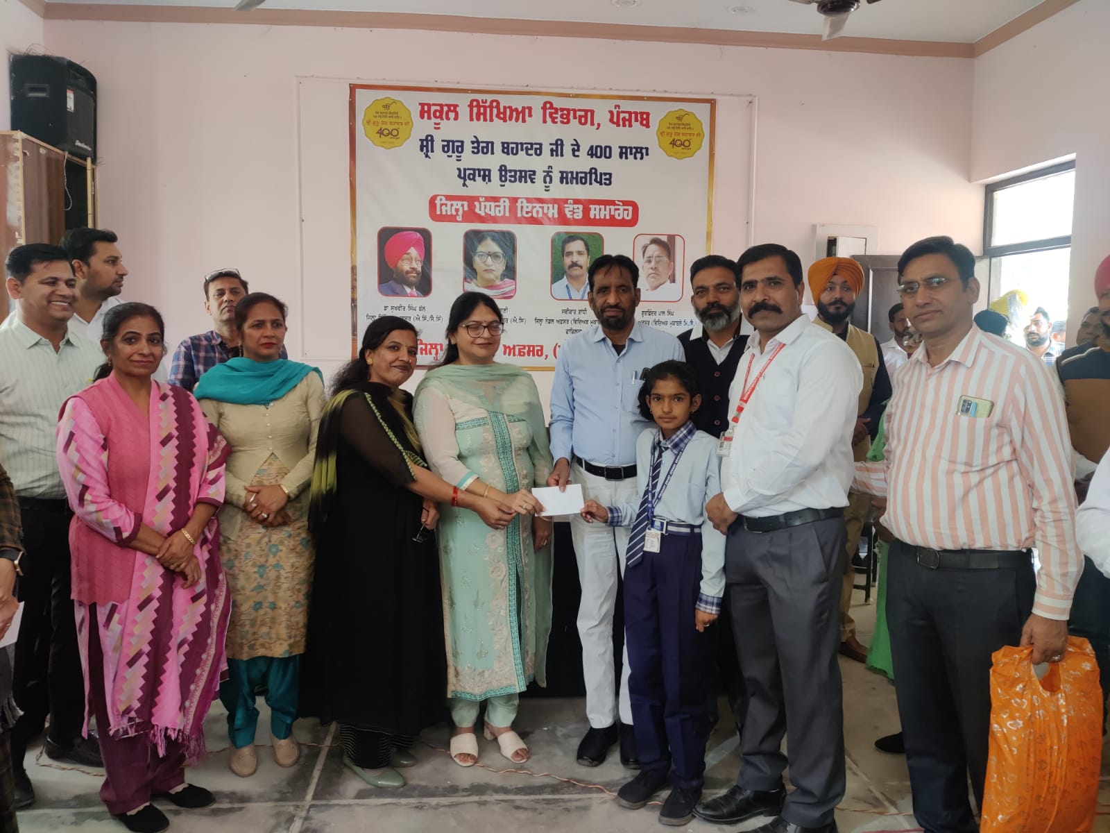 ਸਿੱਖਿਆ ਵਿਭਾਗ ਪੰਜਾਬ ਅਤੇ ਐਸ ਸੀ ਈ ਆਰ ਟੀ ਵੱਲੋ ਗੁਰੂ ਤੇਗ ਬਹਾਦਰ ਜੀ ਦੇ 400 ਸਾਲਾ ਪ੍ਰਕਾਸ਼ ਪੁਰਬ ਨੂੰ ਸਮਰਪਿਤ ਕਰਵਾਏ ਗਏ ਆਨਲਾਈਨ ਵਿੱਦਿਅਕ ਮੁਕਾਬਲੇ ਜੋ ਕੀ ਪਿਛਲੇ ਦਿਨੀ ਸੰਪਨ ਹੋਏ ਸਨ, ਵਿੱਚ ਮੱਲਾ ਮਾਰਨ ਵਾਲੇ ਹੋਣਹਾਰ ਵਿਦਿਆਰਥੀਆਂ ਨੂੰ ਨਕਦ ਰਾਸ਼ੀ ਦੇ ਕੇ ਸਨਮਾਨਿਤ ਕੀਤਾ ਗਿਆ।