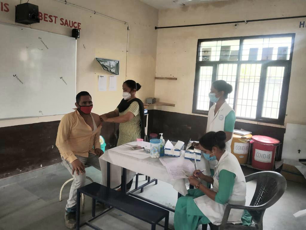 ਵੈਕਸੀਨ ਲਗਵਾਉਣ ਲਈ ਯੋਗ ਵਿਅਕਤੀ ਪਹੁੰਚ ਰਹੇ ਹਨ ਸਰਕਾਰੀ ਕੰਨਿਆ ਸੀਨੀਅਰ ਸੈਕੰਡਰੀ ਸਕੂਲ ਵਿਚ ਸਥਾਪਿਤ ਹੋਏ ਵੈਕਸੀਨੇਸ਼ਨ ਸੈਂਟਰ ਵਿਚ