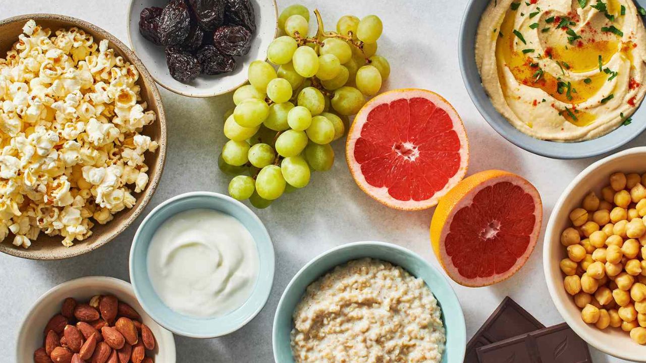 Choose snacks with protein and fiber to encourage fullness and control blood sugar levels. Greek yoghurt with cherries or roasted chickpeas are two examples.