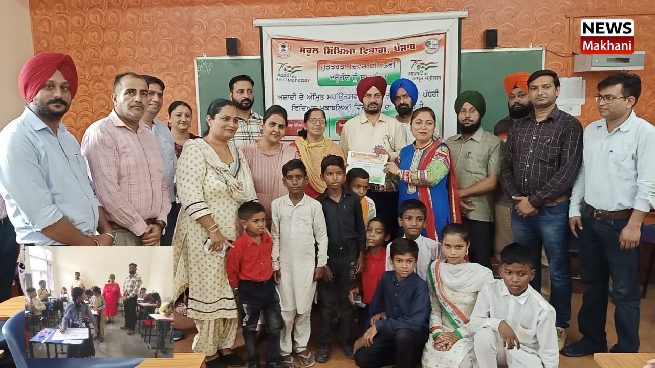 ਇੱਥੋਂ ਦੇ ਜ਼ਿਲ੍ਹਾ ਸਿੱਖਿਆ ਅਤੇ ਸਿਖਲਾਈ ਸੰਸਥਾ ਵਿਖੇ ਸਕੂਲ ਸਿੱਖਿਆ ਵਿਭਾਗ ਵੱਲੋਂ ਸਿੱਖਿਆ ਮੰਤਰੀ ਸ. ਹਰਜੋਤ ਸਿੰਘ ਬੈਂਸ ਦੀ ਅਗਵਾਈ ਹੇਠ ਦੇਸ਼ ਦੀ ਅਜਾਦੀ ਦੀ 75ਵੀਂ ਵਰੇਗੰਢ ਨੂੰ ਸਮਰਪਿਤ ਅਜਾਦੀ ਦਾ ਅੰਮ੍ਰਿਤ ਮਹਾਂਉਤਸਵ ਨੂੰ ਲੈ ਕੇ ਪ੍ਰਾਇਮਰੀ ਸਕੂਲਾਂ ਦੇ ਤਿੰਨ ਰੋਜਾ ਜ਼ਿਲ੍ਹਾ ਪੱਧਰੀ ਵਿੱਦਿਅਕ ਮੁਕਾਬਲੇ ਸਮਾਪਤ ਹੋ ਗਏੇ ਅੰਤਿਮ ਦਿਨ ਇਨਾਮਾਂ ਦੀ ਵੰਡ ਲਈ ਜ਼ਿਲ੍ਹਾ ਸਿੱਖਿਆ ਅਫਸਰ ਜਰਨੈਲ ਸਿੰਘ ਨੇ ਵਿਸ਼ੇਸ਼ ਤੌਰ ਤੇ ਸ਼ਿਰਕਤ ਕੀਤੀ।