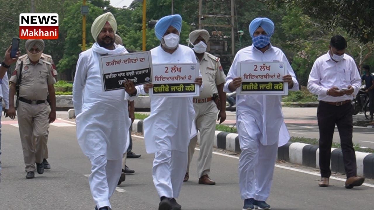 ਕਾਂਗਰਸ ਸਰਕਾਰ ਵੱਲੋਂ ਦਲਿਤ ਵਰਗ ਦੇ ਵਿਦਿਆਰਥੀਆਂ ਦੀ ਪੋਸਟ ਮੈਟ੍ਰਿਕ ਸਕਾਲਰਸਪਿ (ਵਜੀਫਾ) ਰਾਸੀ ਵਿੱਚ ਕੀਤੇ ਘੁਟਾਲੇ ਖਲਿਾਫ ਅੱਜ ਆਮ ਆਦਮੀ ਪਾਰਟੀ (ਆਪ) ਪੰਜਾਬ ਵੱਲੋਂ ਸੂਬੇ ਦੇ ਮੁੱਖ ਮੰਤਰੀ ਕੈਪਟਨ ਅਮਰਿੰਦਰ ਸਿੰਘ ਦੀ ਸਰਕਾਰੀ ਰਿਹਾਇਸ ਅੱਗੇ ਧਰਨਾ ਪ੍ਰਦਰਸਨ ਕੀਤਾ ਗਿਆ। ਆਪ ਦੇ ਸੀਨੀਅਰ ਆਗੂ ਅਤੇ ਪੰਜਾਬ ਵਿਧਾਨ ਸਭਾ ‘ਚ ਵਿਰੋਧ ਧਿਰ ਦੇ ਨੇਤਾ ਹਰਪਾਲ ਸਿੰਘ ਚੀਮਾ ਦੀ ਅਗਵਾਈ ਵਿੱਚ ਮੁੱਖ ਮੰਤਰੀ ਦੀ ਰਿਹਾਇਸ ਅੱਗੇ ਵੱਡੀ ਗਿਣਤੀ ਵਿੱਚ ਪਹੁੰਚੇ ਵਰਕਰਾਂ ਦੇ ਨਾਲ ਨਾਲ ਵਿਰੋਧੀ ਧਿਰ ਦੀ ਉਪ ਆਗੂ ਬੀਬਾ ਸਰਬਜੀਤ ਕੌਰ ਮਾਣੂੰਕੇ, ਵਿਧਾਇਕਾਂ ਮਾਸਟਰ ਬਲਦੇਵ ਸਿੰਘ ਜੈਤੋਂ,