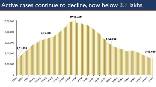 Active Caseload dropped to 3.03 Lakh after 161 days