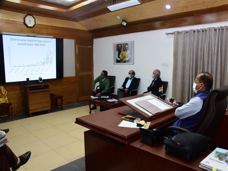 Chief Minister Jai Ram Thakur presided over a high level meeting with senior officers to review the Covid-19 situation in the State, here today.