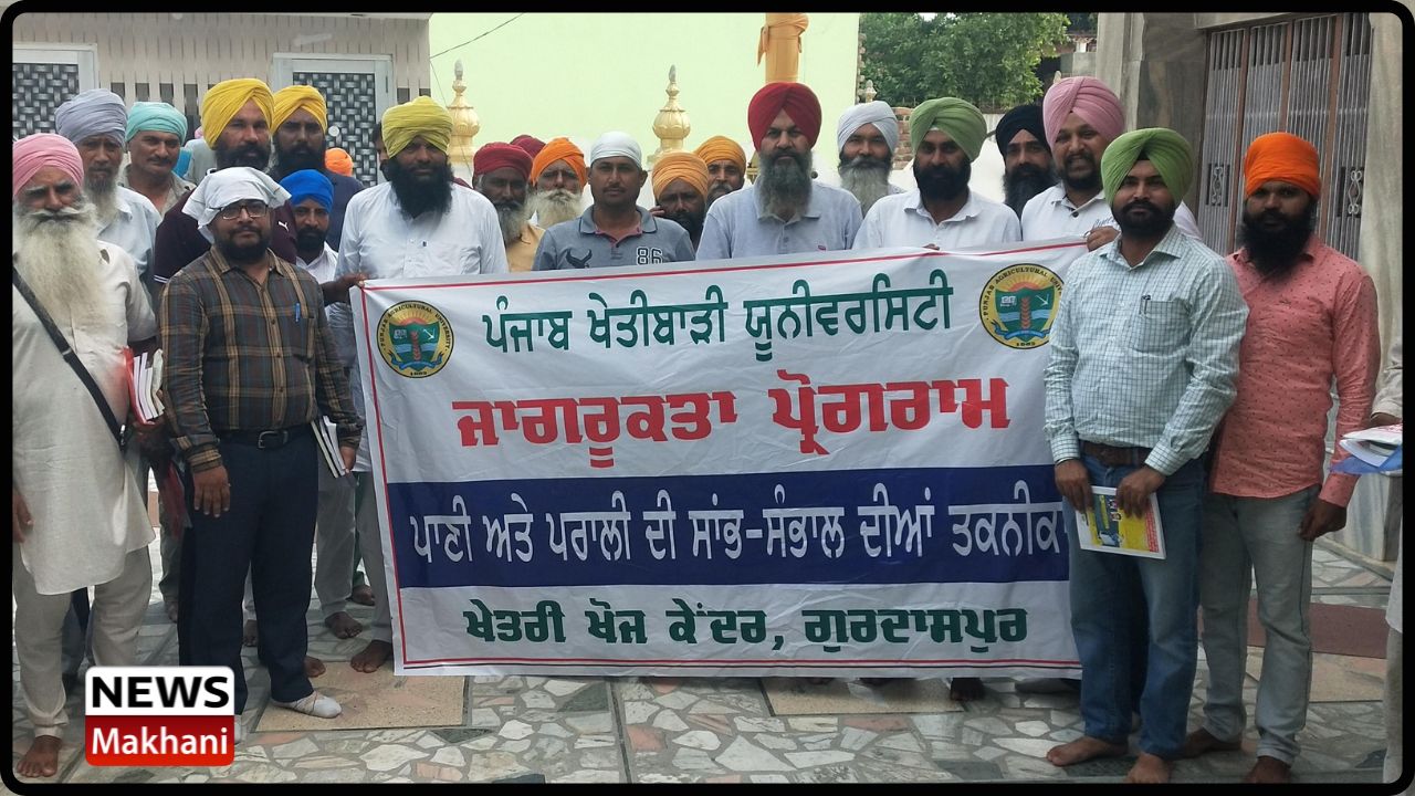 ਗੁਰਦਾਸਪੁਰ, 7 ਅਕਤੂਬਰ :- ਪੰਜਾਬ ਖੇਤੀਬਾੜੀ ਯੂਨੀਵਰਸਿਟੀ ਦੇ ਖੇਤਰੀ ਖੋਜ ਕੇਂਦਰ ਗੁਰਦਾਸਪੁਰ ਵੱਲੋਂ ਰਾਸ਼ਟਰੀ ਕ੍ਰਿਸ਼ੀ ਵਿਕਾਸ ਸਕੀਮ ਅਧੀਨ ਅੱਜ ਪਿੰਡ ਵਿਰਕ, ਬਾਂਗੋਵਾਣੀ ਵਿਖੇ ਪਾਣੀ ਅਤੇ ਪਰਾਲੀ ਦੀ ਸੁਚੱਜੀ ਵਰਤੋਂ ਕਰਨ ਲਈ ਜਾਗਰੂਕਤਾ ਕੈਂਪ ਲਗਾਇਆ ਗਿਆ। ਇਸ ਮੌਕੇ ਪਿੰਡ ਵਿਰਕ ਵਿਖੇ ਨਾਲ ਲਗਦੇ ਪਿੰਡਾਂ ਦੇ 100 ਤੋਂ ਵੱਧ ਕਿਸਾਨਾਂ ਨੇ ਹਿੱਸਾ ਲਿਆ।