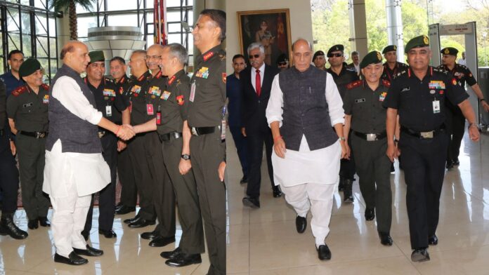 Shri Rajnath Singh, Hon’ble Raksha Mantri, in his keynote address on 2nd April 2024, reaffirmed the nation’s trust in the Indian Army, acknowledging its indispensable role in national security. He applauded the stellar role of the Army in guarding the borders, fighting terrorism and providing aid to the civil administration during crises. The Hon’ble RM exhorted the Army leadership to constantly review doctrinal, structural, & organisational reforms to meet future challenges in view of the evolving security dynamics.