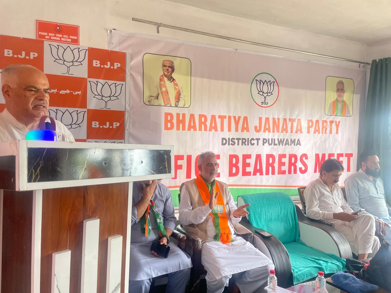 Jammu & Kashmir BJP General Secretary (organization) Ashok Koul chaired a key meeting of District Office Bearers at the party office in Pulwama, aiming to review ongoing organizational activities and discuss future strategies to strengthen the party’s grassroots presence.