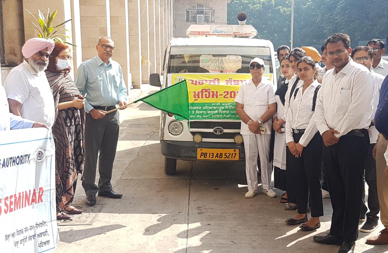ਡਿਪਟੀ ਕਮਿਸ਼ਨਰ ਸ਼੍ਰੀ ਸੰਦੀਪ ਹੰਸ ਨੇ ਦੱਸਿਆ ਕਿ ਖੇਤੀਬਾੜੀ ਤੇ ਕਿਸਾਨ ਭਲਾਈ ਵਿਭਾਗ ਵੱਲੋਂ ਚਲਾਈਆਂ ਗਈਆਂ ਜਾਗਰੂਕਤਾ ਵੈਨਾਂ ਪਟਿਆਲਾ ਜ਼ਿਲ੍ਹੇ ਦੇ ਸਾਰੇ 934 ਪਿੰਡਾਂ ਵਿਚ ਜਾਣਗੀਆਂ ਅਤੇ ਇਨ੍ਹਾਂ ਦੇ ਨਾਲ ਜ਼ਿਲ੍ਹਾ ਕਾਨੂੰਨੀ ਸੇਵਾਵਾਂ ਅਥਾਰਟੀ ਵੱਲੋਂ ਭੇਜੇ ਗਏ ਪੀ.ਐਲ.ਵੀਜ਼ ਤੇ ਲਾਅ ਦੇ ਵਿਦਿਆਰਥੀ ਵੀ ਸ਼ਾਮਲ ਹੋਣਗੇ ਜੋ ਕਿਸਾਨਾਂ ਨੂੰ ਪਰਾਲੀ ਨੂੰ ਅੱਗ ਨਾ ਲਗਾਉਣ ਲਈ ਪ੍ਰੇਰਿਤ ਕਰਨ ਦੇ ਨਾਲ ਹੀ ਕਾਨੂੰਨੀ ਸੇਵਾਵਾਂ ਅਥਾਰਟੀ ਵੱਲੋਂ ਦਿੱਤੀਆਂ ਜਾਂਦੀਆਂ ਸਹੂਲਤਾਂ ਸਬੰਧੀ ਵੀ ਪਿੰਡ ‘ਚ ਵਸਦੇ ਲੋਕਾਂ ਨੂੰ ਜਾਗਰੂਕ ਕਰਨਗੇ।