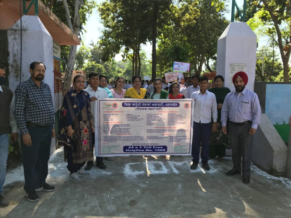 ਮਾਨਯੋਗ ਮੈਂਬਰ ਸਕੱਤਰ, ਪੰਜਾਬ ਰਾਜ ਕਾਨੂੰਨੀ ਸੇਵਾਵਾ ਅਥਾਰਟੀ, ਐਸ.ਏ.ਐਸ ਨਗਰ, ਰਾਹੀਂ ਪ੍ਰਾਪਤ ਹੋਏ ਦਿਸਾ ਨਿਰਦੇਸ਼ਾਂ ਦੀ ਪਾਲਣਾ ਕਰਦੇ ਹੋਏ ਹੋਏ “Pan India Awareness and Outreach Programme” from 2nd October, 2021 to 14thNovember, 2021 as a part of “Azadi Ka Amrit Mahotsav” and Legal Services Week from 08th to 14th November, 2021 ਦੇ ਤੋਰ ਤੇ ਮਨਾਇਆ ਜਾ ਰਿਹਾ ਹੈ ਇਸ ਸਬੰਧ ਵਿੱਚ ਅੱਜ ਮਿਤੀ 29.10.2021 ਨੂੰ ਜਿਲਾ ਕਾਨੂੰਨੀ ਸੇਵਾਵਾਂ ਅਥਾਰਟੀ, ਪਠਾਨਕੋਟ ਵਲੋਂ ਸਰਕਾਰੀ ਹਾਈ, ਸਕੂਲ ਸਾਹਪੁਰਕੰਡੀ ਵਿਖੇ ਮੁਫਤ ਕਾਨੂੰਨੀ ਸਹਾਇਤਾ ਸਬੰਧੀ ਸੈਮੀਨਾਰ ਲਗਾਇਆ ਅਤੇ ਨਾਲ ਰੈਲੀ ਕੱਢੀ ਗਈ ।