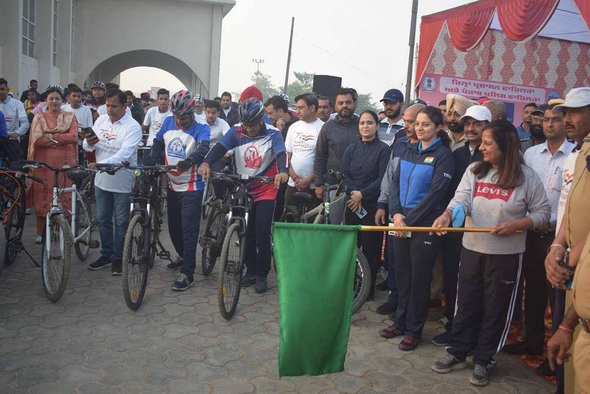 ਫਾਜਿ਼ਲਕਾ ਵਿਖੇ ਅਜਾਦੀ ਕਾ ਅੰਮ੍ਰਿਤ ਮਹਾਉਤਸਵ ਨੂੰ ਸਮਰਪਿਤ ਸਾਇਕਲ ਰੈਲੀ ਮੰਗਲਵਾਰ ਨੂੰ ਕਰਵਾਈ ਗਈ। ਇਸ ਰੈਲੀ ਨੂੰ ਡਿਪਟੀ ਕਮਿਸ਼ਨਰ ਸ੍ਰੀਮਤੀ ਬਬੀਤਾ ਕਲੇਰ ਨੇ ਹਰੀ ਝੰਡੀ ਵਿਖਾ ਕੇ ਰਵਾਨਾ ਕੀਤਾ। ਇਸ ਰੈਲੀ ਵਿਚ ਫਾਜਿ਼ਲਕਾ ਜਿ਼ਲ੍ਹੇ ਦੇ ਲੋਕਾਂ ਖਾਸ ਕਰਕੇ ਨੌਜਵਾਨਾਂ ਅਤੇ ਵਿਦਿਆਰਥੀਆਂ ਨੇ ਵੱਡੇ ਉਤਸਾਹ ਨਾਲ ਭਾਗ ਲਿਆ। ਰੈਲੀ ਫਾਜਿ਼ਲਕਾ ਦੇ ਬਹੁਮੰਤਵੀ ਖੇਡ ਸਟੇਡੀਅਮ ਤੋੋਂ ਸ਼ੁਰੂ ਹੋਈ ਅਤੇ ਆਸਫਵਾਲਾ ਦੇ ਵਾਰ ਮੈਮੋਰੀਅਲ ਤੋਂ ਹੋ ਕੇ ਵਾਪਿਸ ਸਟੇਡੀਅਮ ਵਿਖੇ ਹੀ ਸੰਪਨ ਹੋਈ।