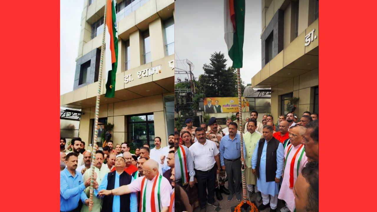 At the BJP Headquarters, Trikuta Nagar, J&K BJP President Sat Sharma, General Secretary (Organization) Ashok Koul, and MLA Ch. Vikram Randhawa hoisted the Tiranga. They were joined by BJP Vice-Presidents Rajiv Charak, Rakesh Mahajan, and Rekha Mahajan, General Secretaries Baldev Singh Billawaria and Gopal Mahajan, Tilak Raj Gupta, Dr. Pardeep Mahotra, Naresh Singh, Balbir Ram Rattan, Prof. Kulbhushan Mohtra, Arun Prabhat, Neha Mahajan, Aseem Gupta, Vinay Mahajan, Ayodhya Gupta, Sham Langer, Prem Gupta, Shailja Gupta, Dil Bahadur Jamwal, Er. T.K. Sharma, and other senior leaders and activists.