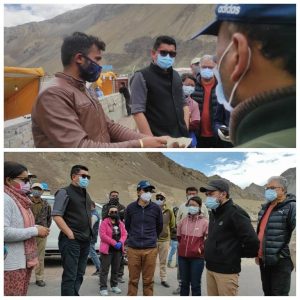 Inspecting the Covid Screening point at Khaltsi, CEC Gyalson and MP JTN resolved few issues on the spot in coordination with the concerned district officers and also assured to resolve all issues with utmost priority to the requirement of medical facilities. Both of them directed SDM Khaltsi and other officials to take strict actions against Covid protocol violators especially travellers.