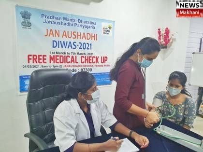 The 3rd Janaushadhi Diwas 2021 celebrations commenced today. It will be a weeklong celebrations starting today ie from 1st March to 7th March 2021. Jan Aushadhi kendras today conducted Health Checkup Camps across the country. These health check-up camps included Blood Pressure checkup, Sugar level checkup, free doctor consultation, free medicine distribution, etc. at various Jan Aushadhi kendras. More than 1000 health check-up camps at different places were organized today across the country. General public who visited these health camps were also informed and educated about the price benefits and quality of the medicines being sold at Jan Aushadhi kendras.