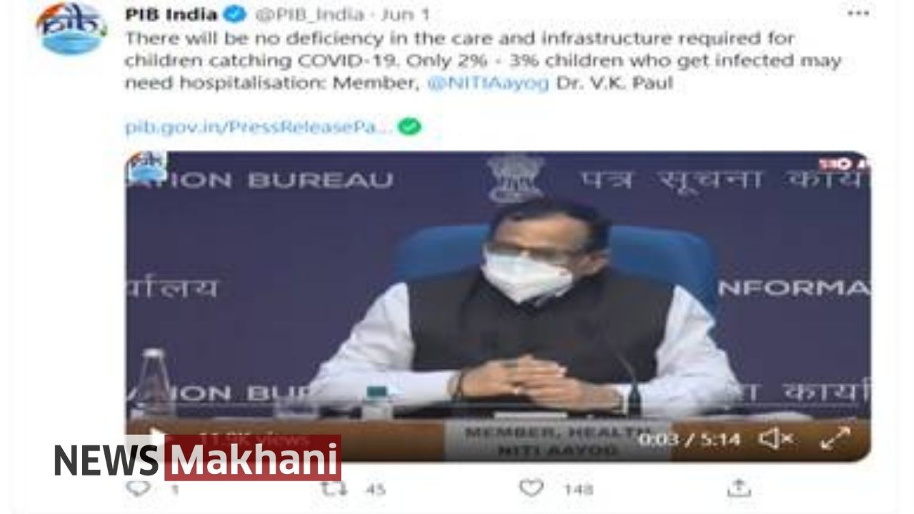 Dr. V. K. Paul, Member (Health), NITI Aayog at the Union Health Ministry’s media briefing on COVID-19 on 1st June 2021 had informed that adequate arrangements are being made in terms of healthcare infrastructure in order to provide effective care and treatment to children who may get infected. He had further said that COVID-19 in children is often asymptomatic and seldom requires hospitalization. However, it is possible that a small percentage of children who get infected may need hospitalization