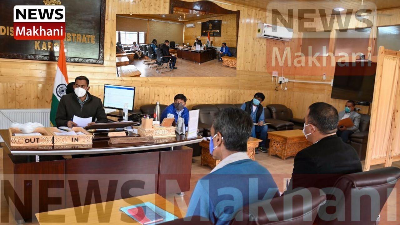 KARGIL MAY 21, 2021: In order to take stock of the COVID-19 mitigation measures in the district including the surveillance, screening, testing, stock position of medicines, testing kits, oxygen supply and demand, vaccination strategy and supply, labour management, provision of free ration to beneficiaries under the Pradhan Mantri Garib Kalyan Anna Yojana (PMGKAY) and other related aspects, Deputy Commissioner/District Magistrate and CEO, LAHDC, Kargil convened a meeting of the concerned officers at DC Office Kargil here today.