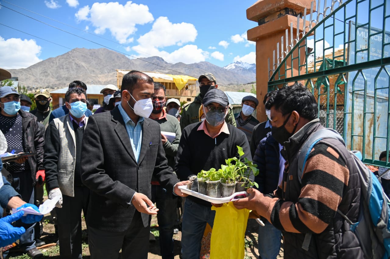 KARGIL MAY 25, 2021: Deputy Commissioner and CEO, LAHDC, Kargil Santosh Sukhadeve inaugurated vegetable seedling distribution among farming families at Floriculture Garden near Agriculture Complex Baroo here today.
