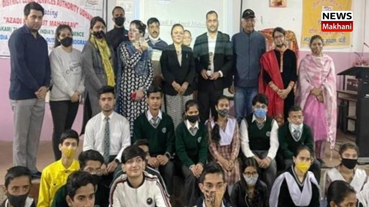 Rajni Sharma, Secretary, District Legal Services Authority, Udhampur, Advocate Sanjeet Kumar (Panel Lawyer). Students & staff of the host school attended the Programme organised in connection with the Pan India Awareness and Outreach Campaign being held under the aegis of Azadi Ka Amrit Mahotsav.