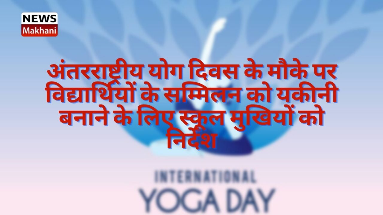 ਪੰਜਾਬ ਸਕੂਲ ਸਿੱਖਿਆ ਵਿਭਾਗ ਨੇ ਅੰਤਰਰਾਸ਼ਟਰੀ ਯੋਗਾ ਦਿਵਸ ਦੇ ਮੌਕੇ ਵਿਦਿਆਰਥੀਆਂ ਦੀ ਸ਼ਮੂਲੀਅਤ ਨੂੰ ਯਕੀਨੀ ਬਨਾਉਣ ਲਈ ਸਕੂਲ ਮੁਖੀਆਂ ਨੂੰ ਨਿਰਦੇਸ਼ ਦਿੱਤੇ ਹਨ।