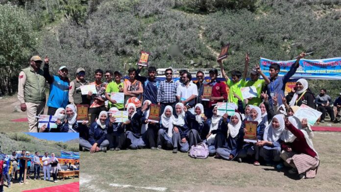 I/c SHO Panikhar, Mohd Hadi presented Rs 1000 cash prize to the best performing athlete of the 10Km athletic event, Mohd Baqir from HSS Biama Purtilchey.